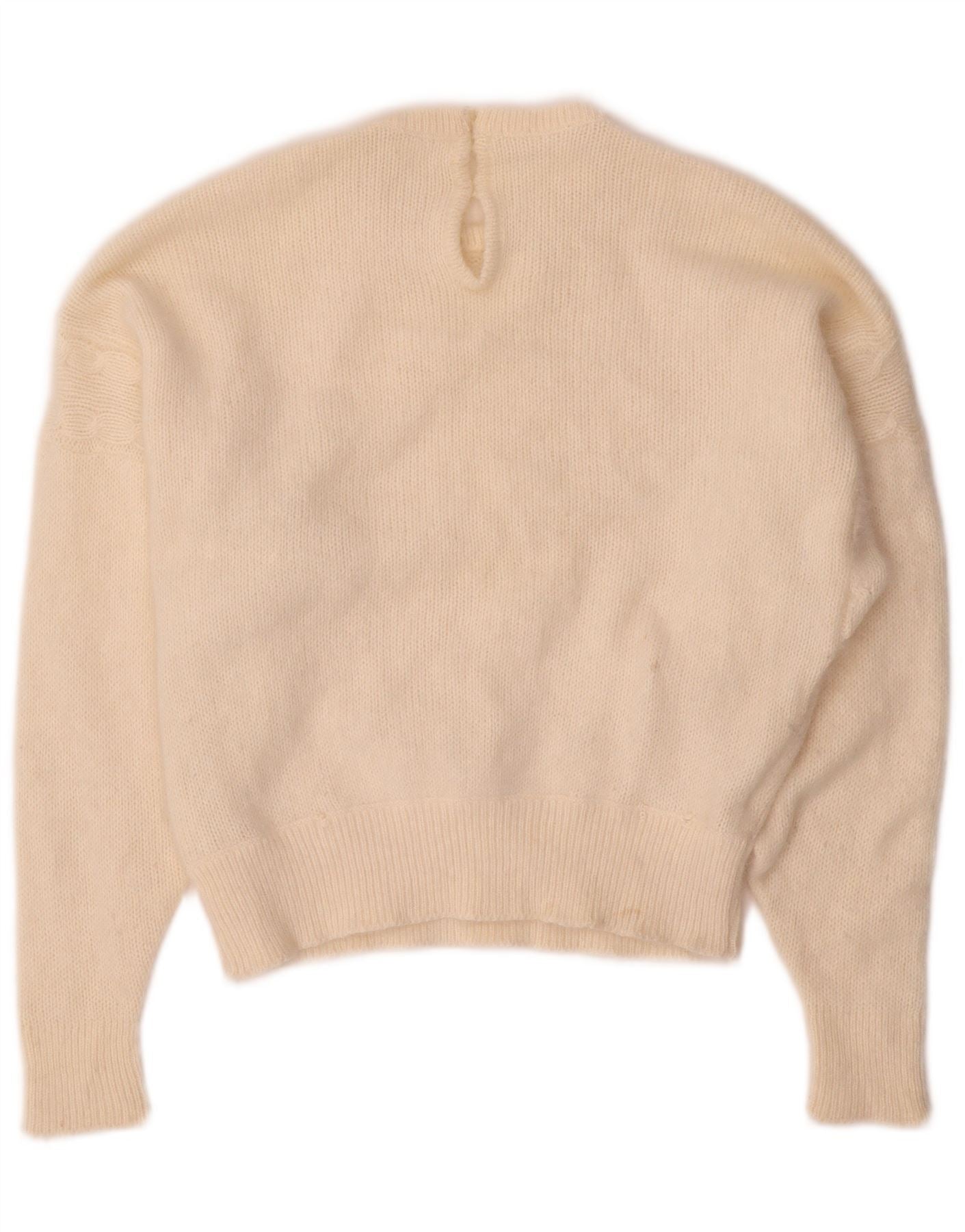 Suéter feminino VINTAGE com gola redonda UK 14 médio off white