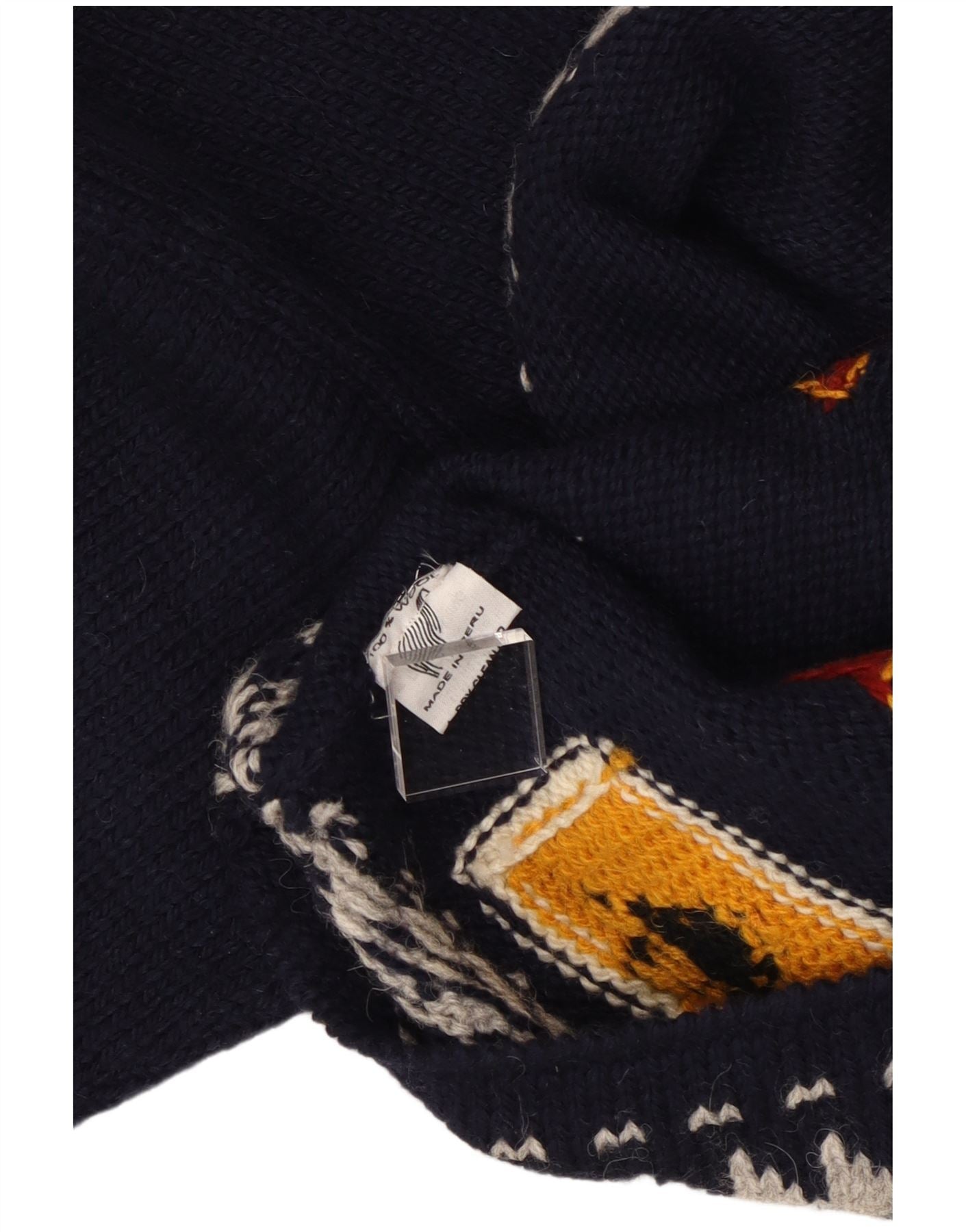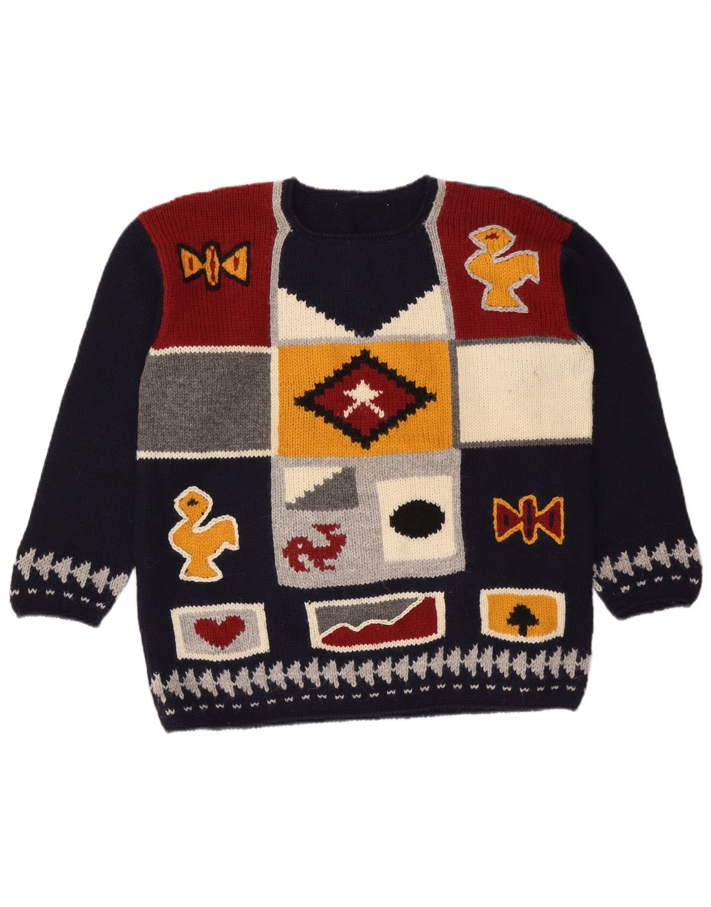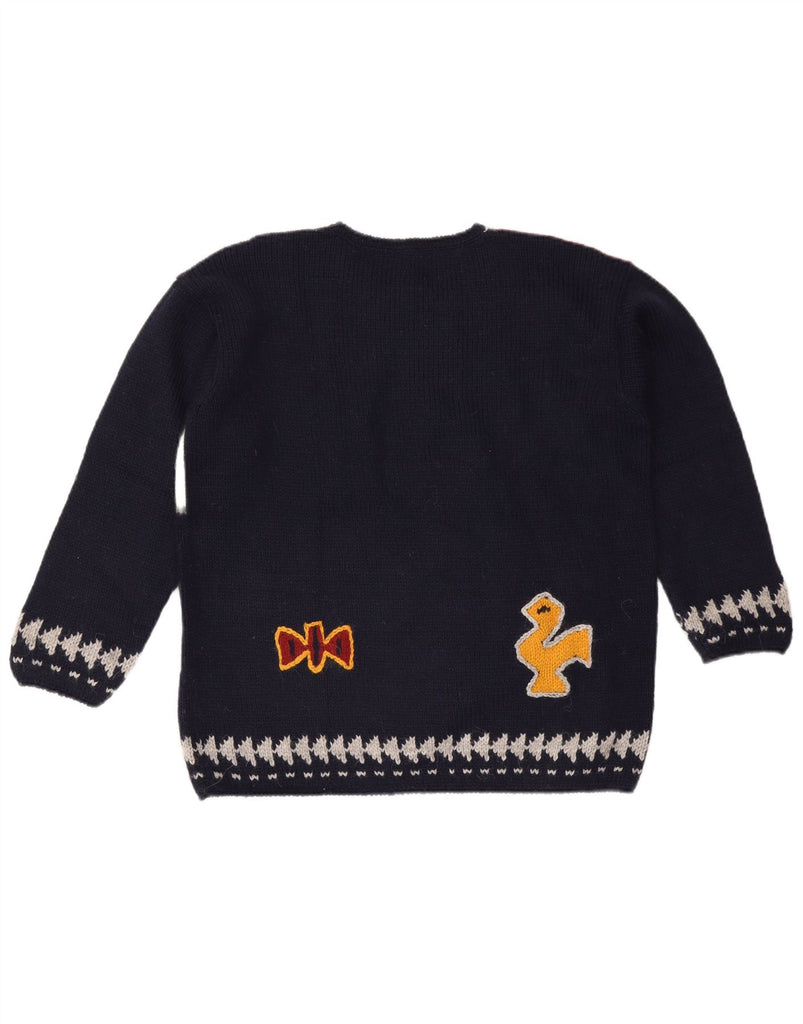 Suéter feminino VINTAGE com gola redonda Reino Unido 16 grande azul marinho geométrico