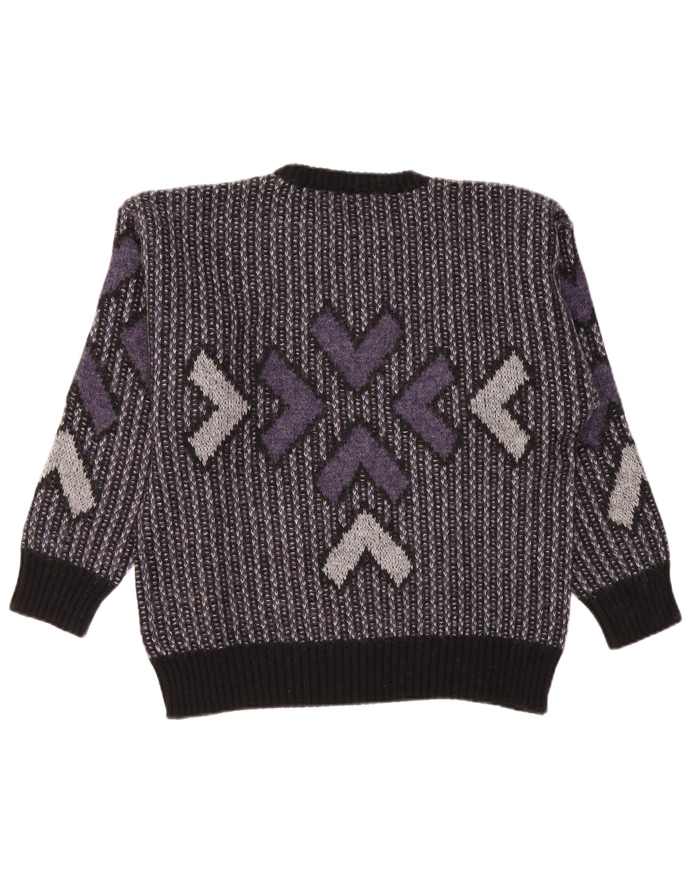 Suéter feminino VINTAGE com gola redonda Reino Unido 16 grande lã geométrica roxa