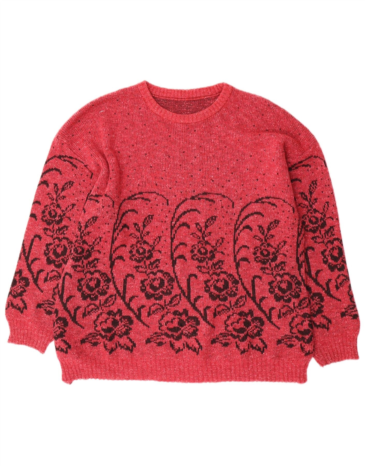 Suéter feminino VINTAGE com gola redonda Reino Unido 16 grande vermelho floral