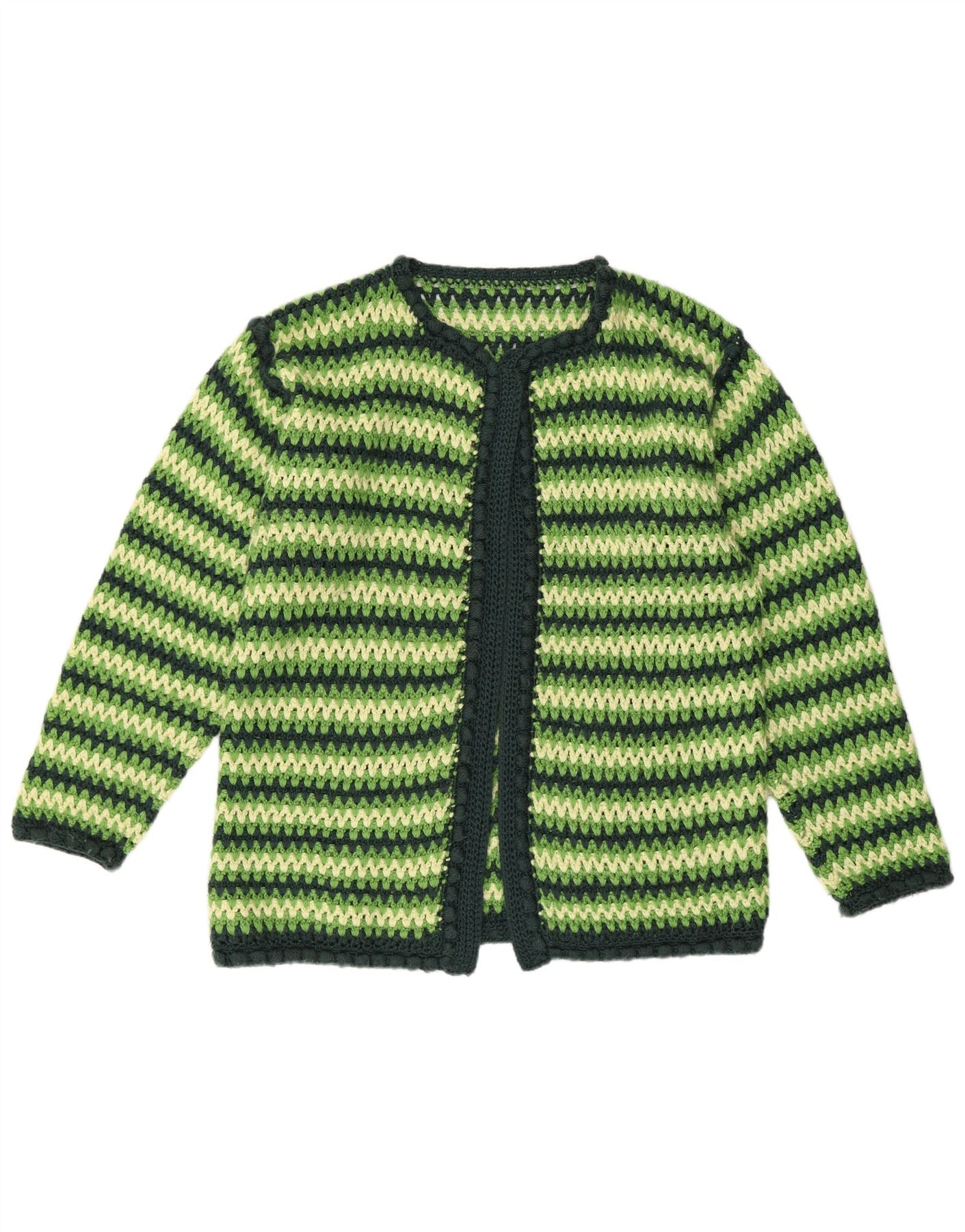 Suéter cardigã feminino de crochê VINTAGE Reino Unido 16 grande listrado verde