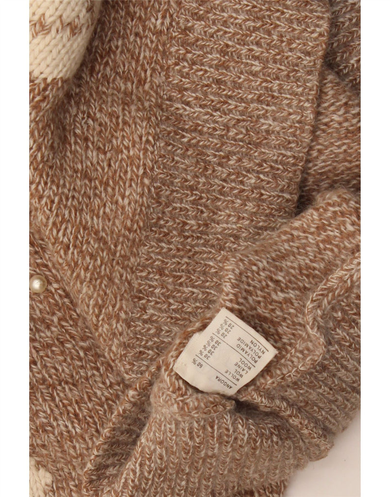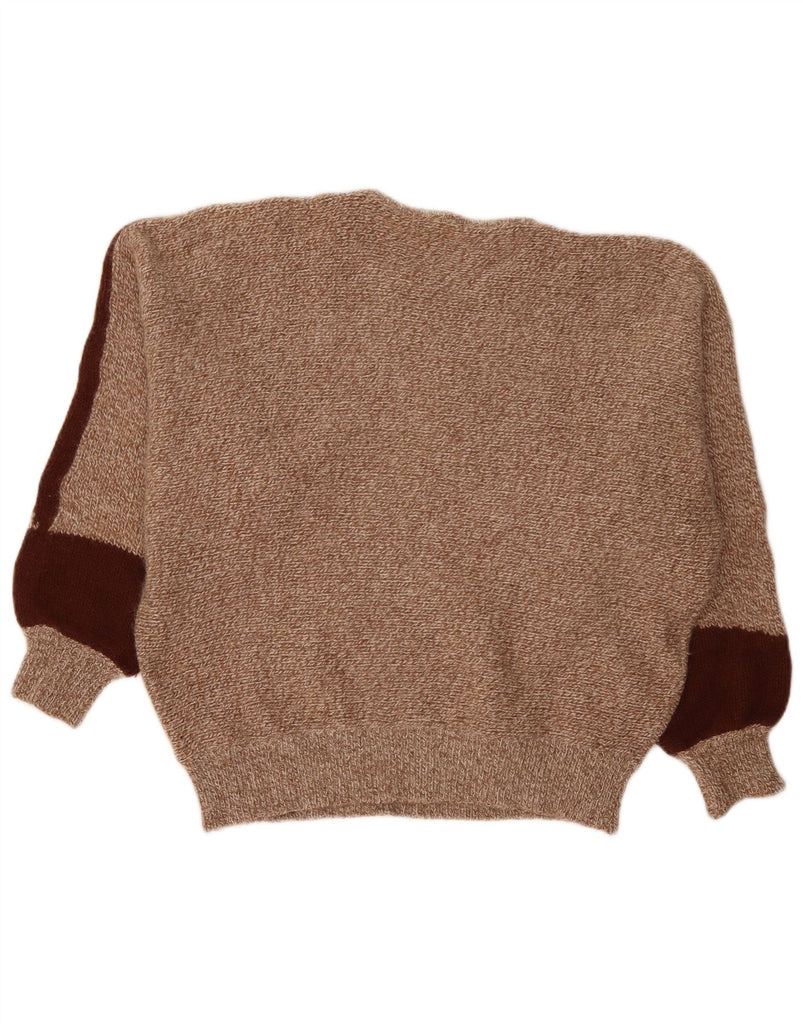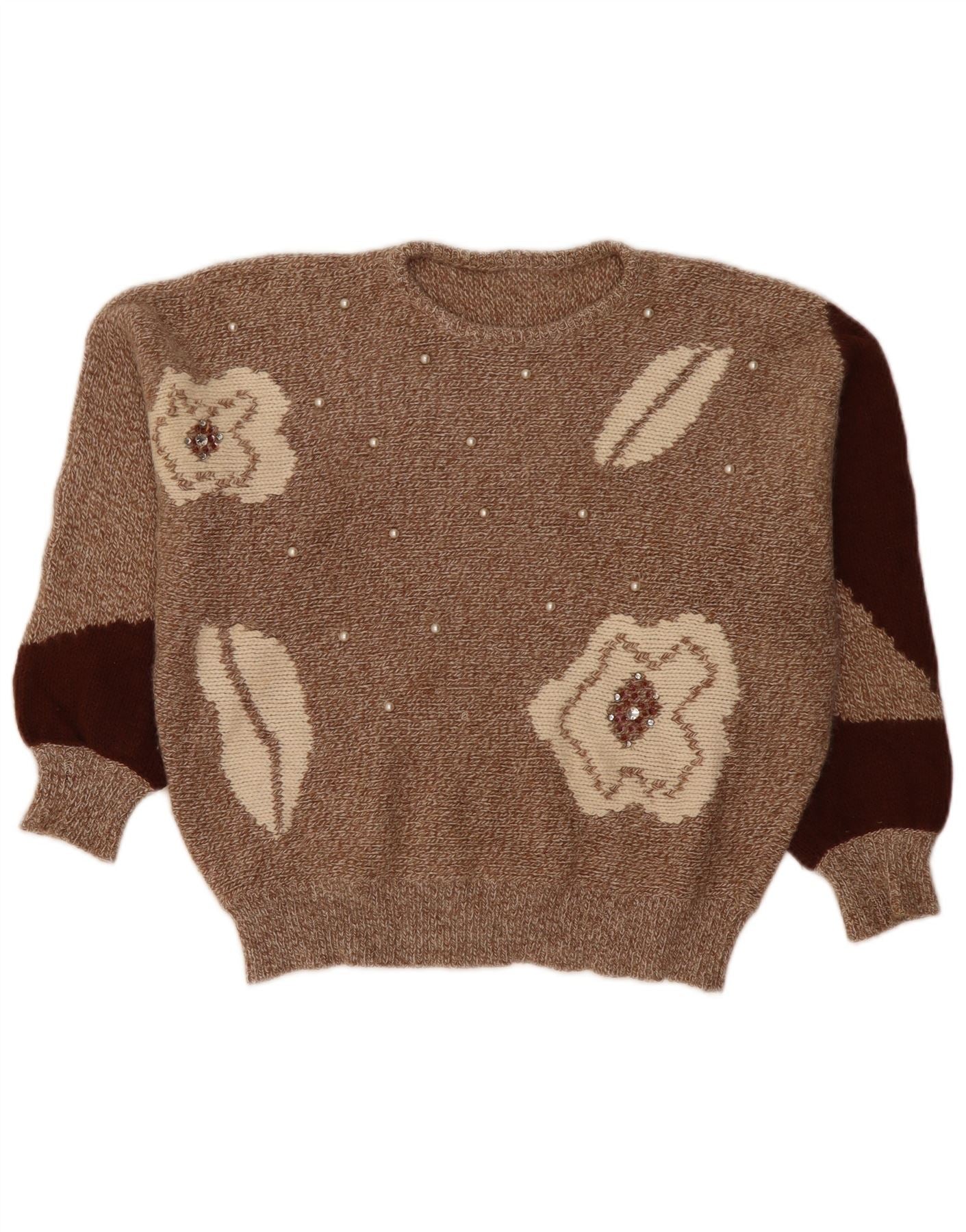 Suéter feminino VINTAGE com gola redonda e gola redonda Reino Unido 14 marrom médio manchado