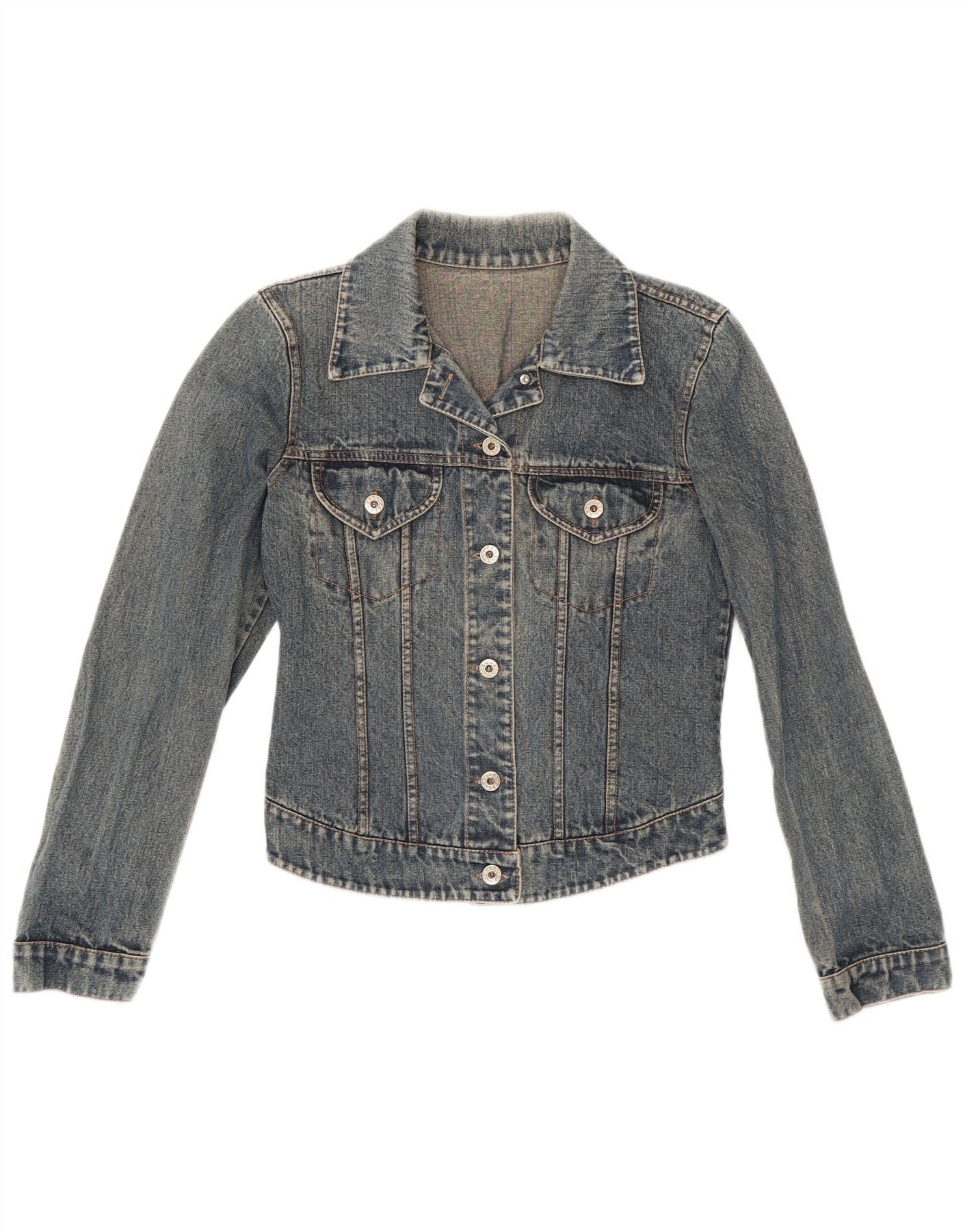 Jaqueta jeans feminina vintage UK 4 XS azul