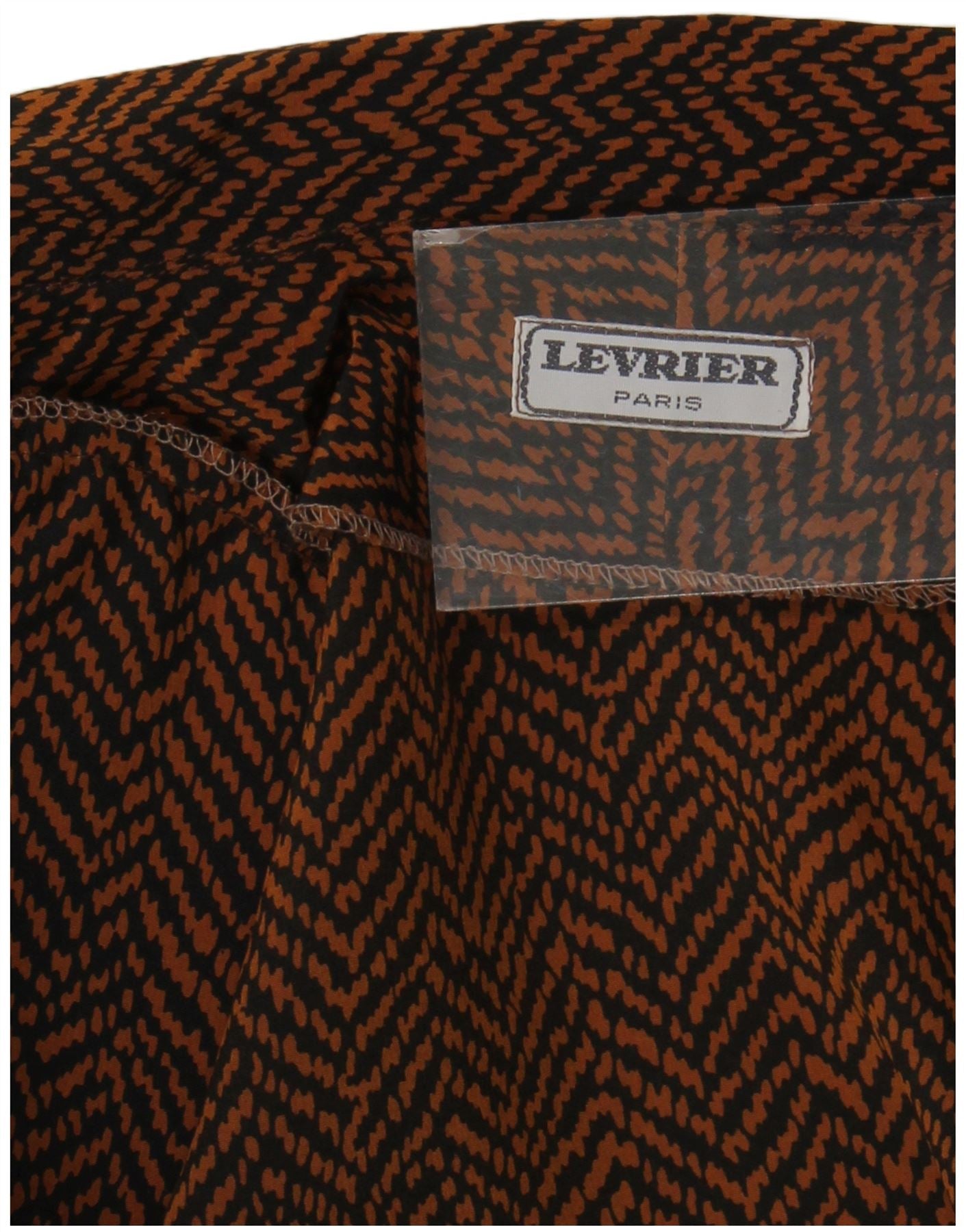 - Descrição da IA: Esta blusa feminina Levrier Paris é confeccionada em tecido, apresentando um distinto padrão de espinha de peixe marrom e preto. Apresenta decote com gola e mangas curtas. O design inclui uma elegante frente envolvente. Esta blusa recortada oferece um corte descontraído, presa com fechos sutis de botões. Seu estilo retrô adiciona um toque único.