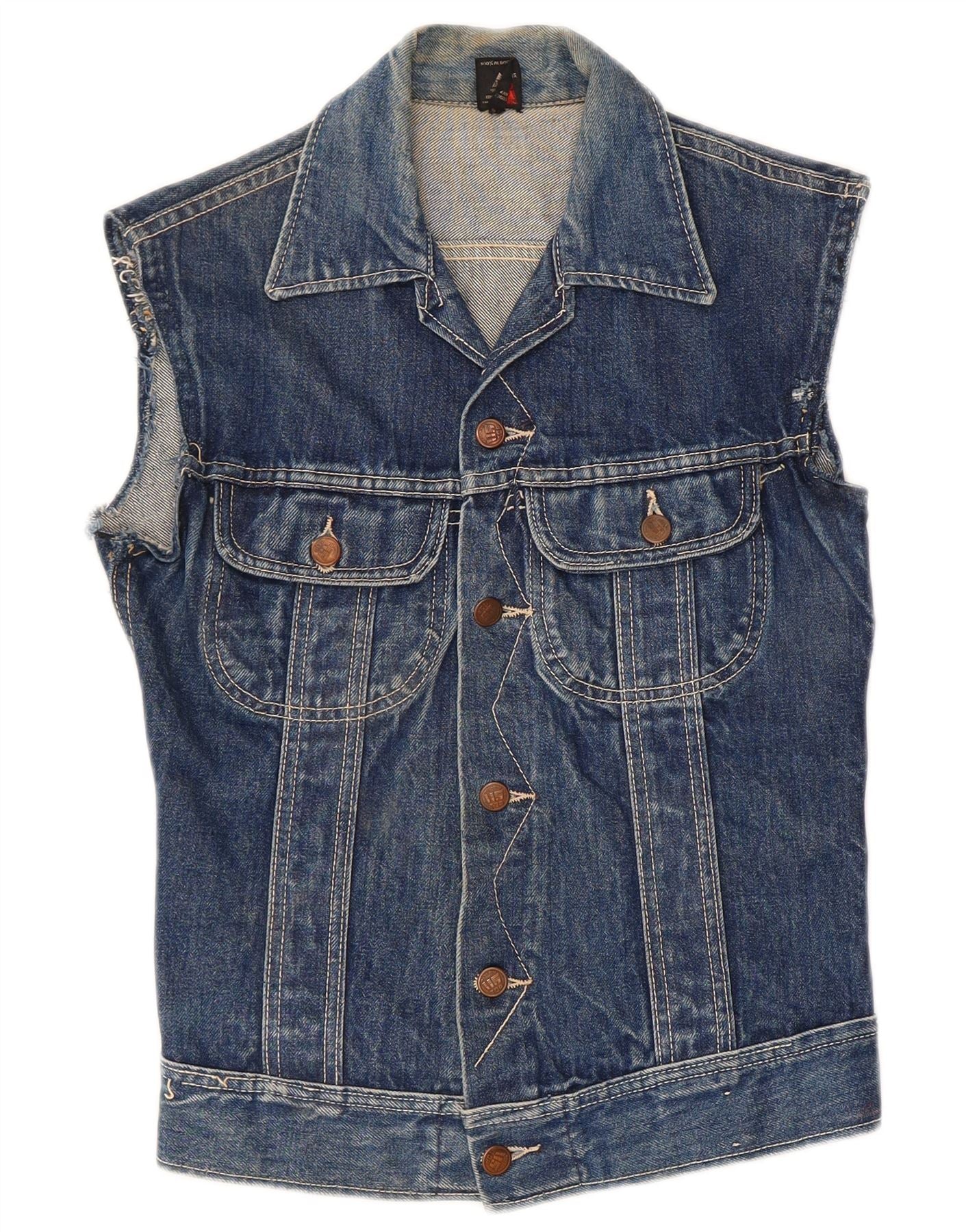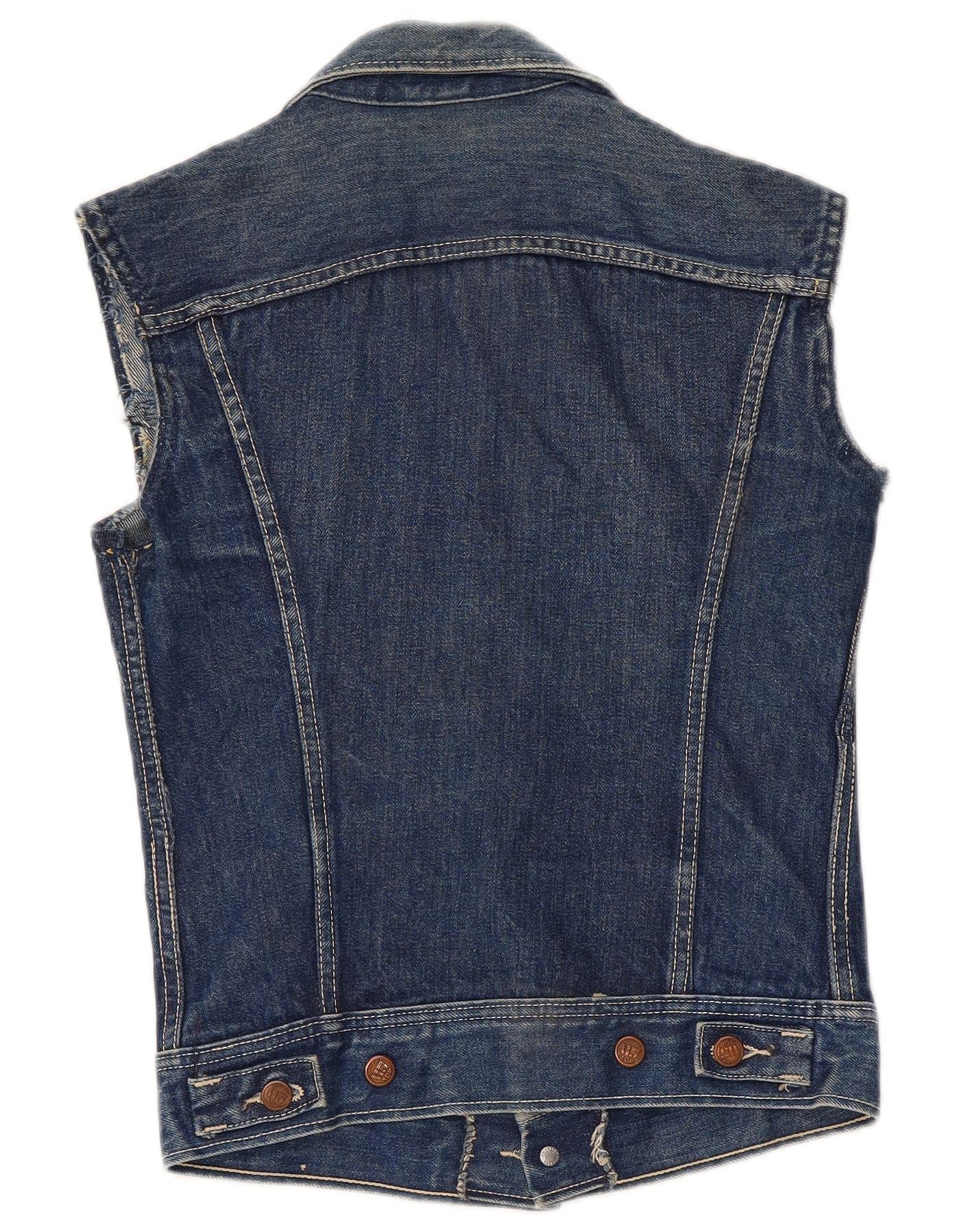 Colete jeans feminino vintage UK 8 algodão azul pequeno