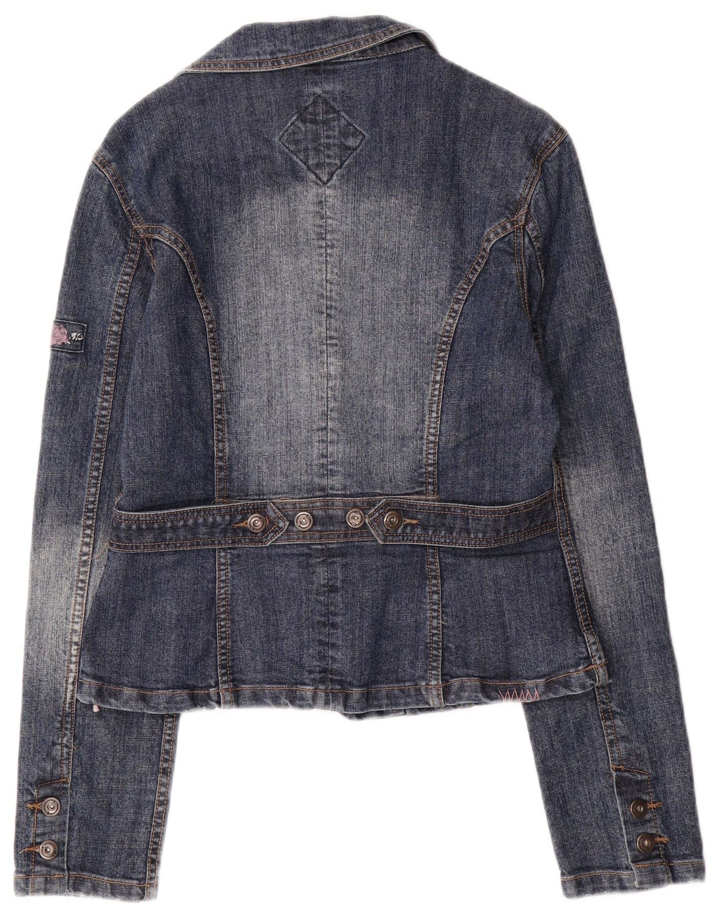 Jaqueta jeans feminina vintage Reino Unido 14 grande algodão azul