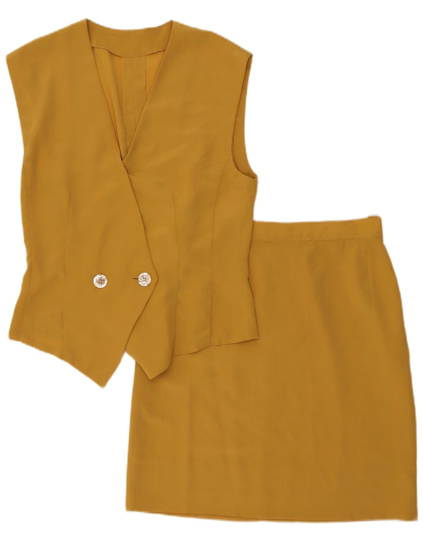 VINTAGE Womens Double Breasted 2 Piece Skirt Set UK 12 Medium W29 Yellow