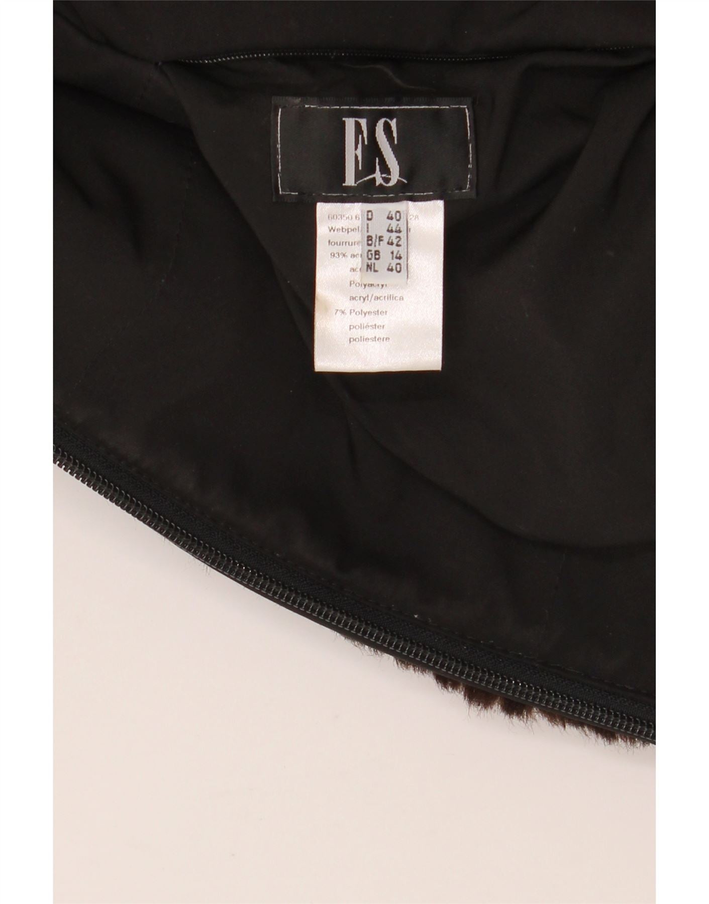 Colete feminino VINTAGE de pele sintética UK 14 acrílico marrom médio