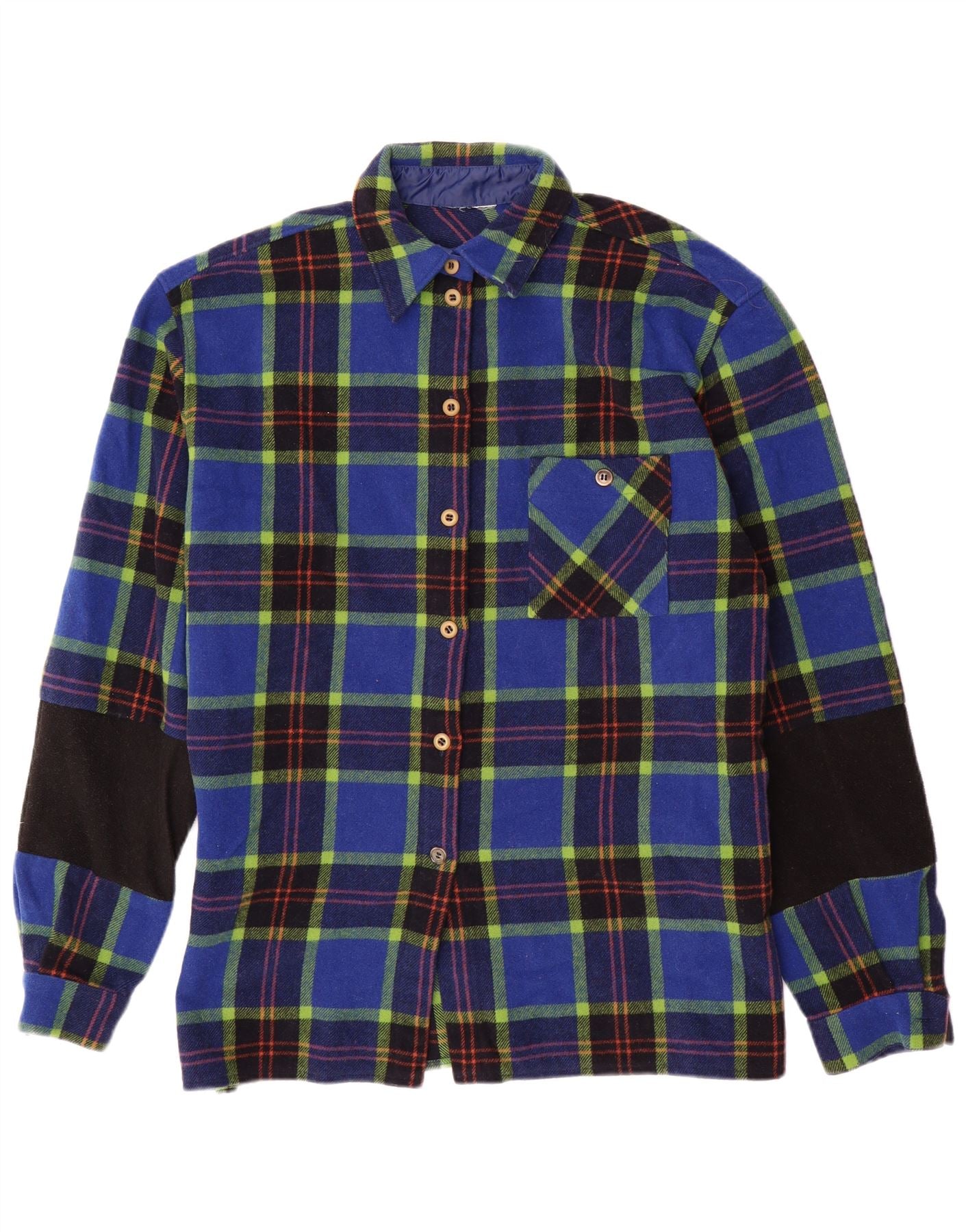 Camisa feminina de flanela VINTAGE UK 20 2XL lã xadrez azul