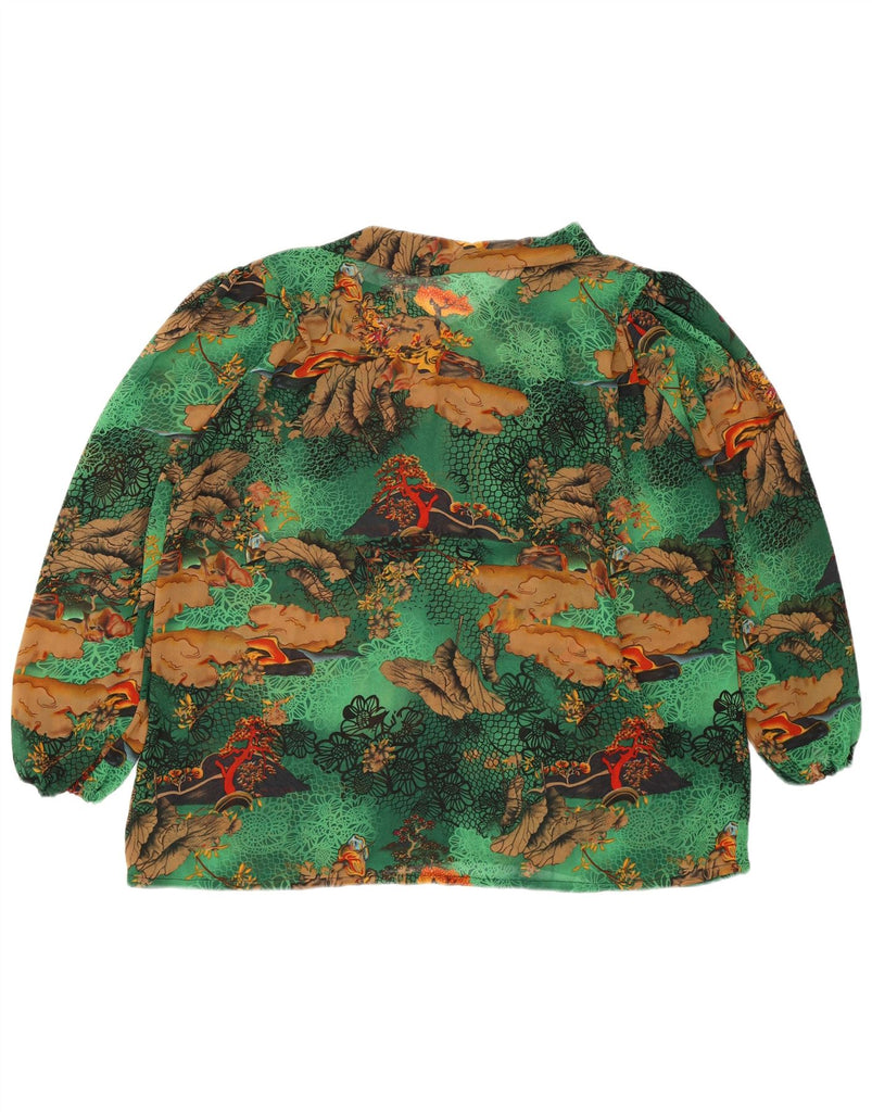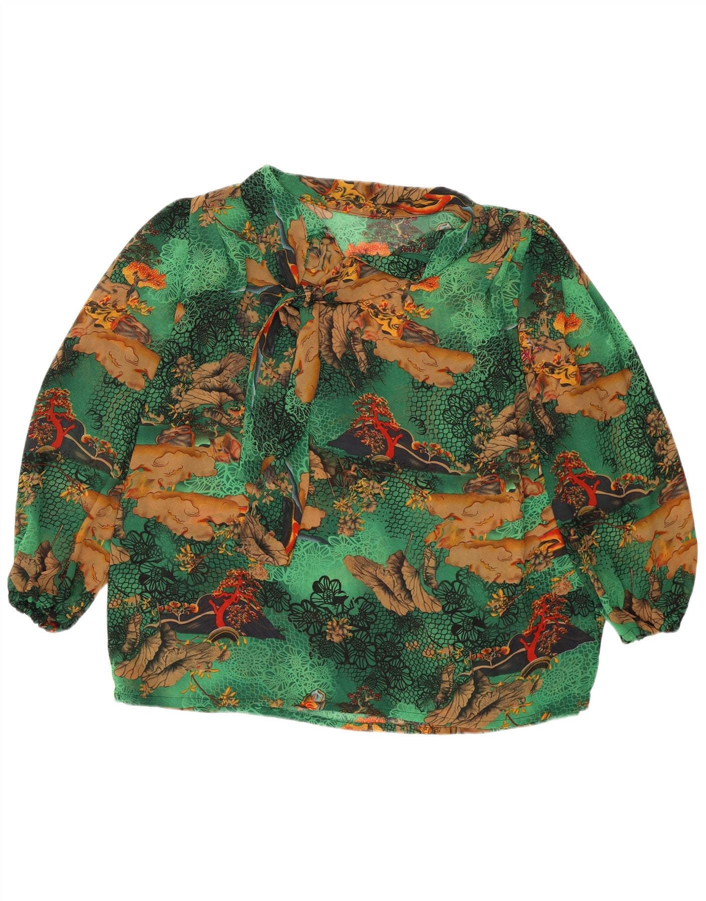 VINTAGE Womens Front Tie See Through Blouse Top UK 20 2XL Green Floral