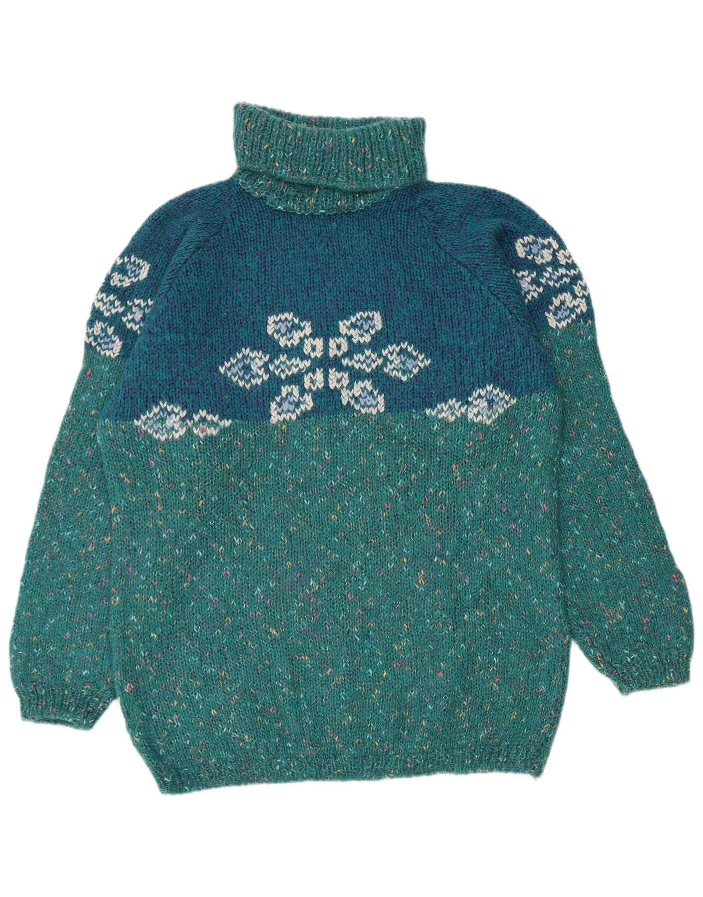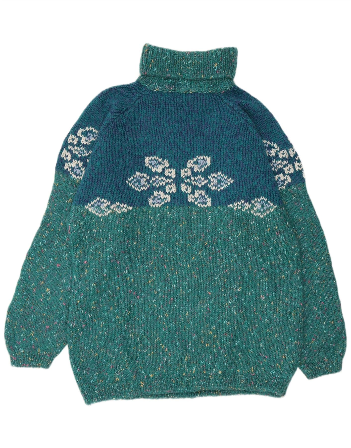 Suéter feminino VINTAGE com gola redonda e gola redonda Reino Unido 18 XL turquesa salpicado