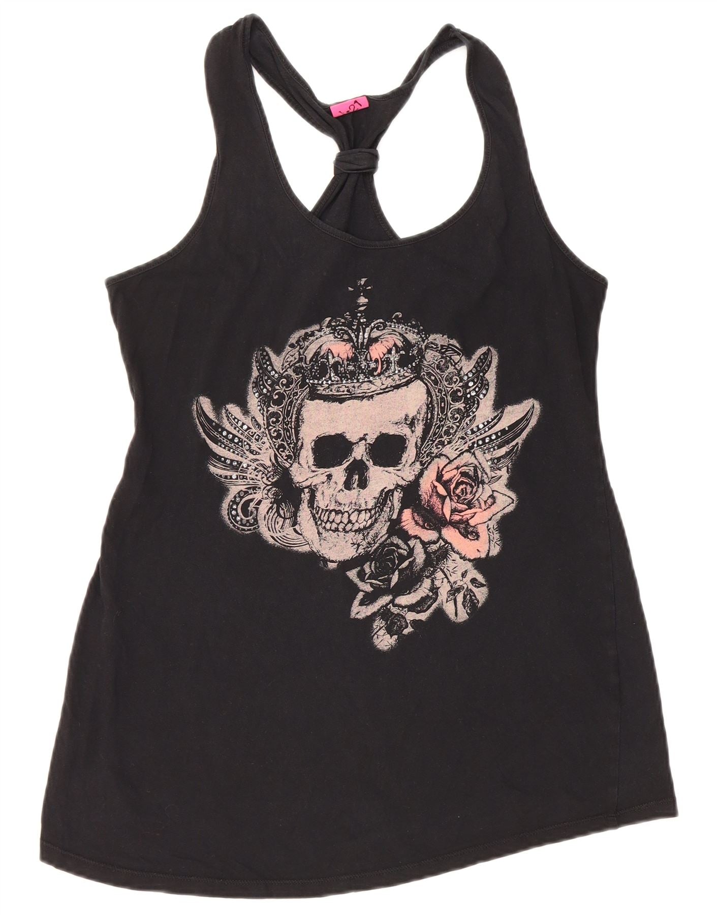 Colete feminino VINTAGE com estampa gráfica UK 12 algodão preto médio