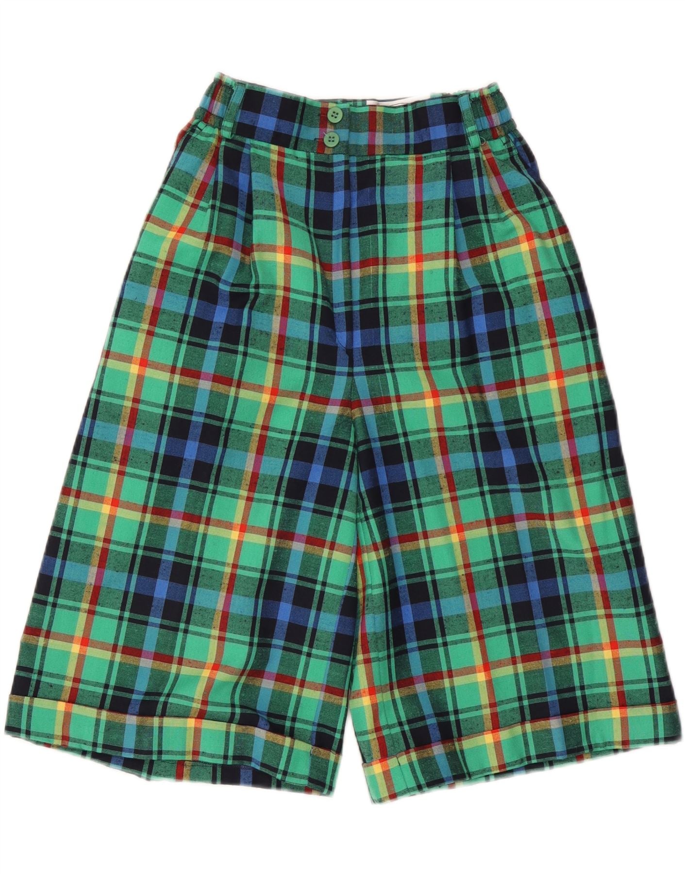 Bermuda feminina VINTAGE de cintura alta UK 10 pequena W24 verde xadrez