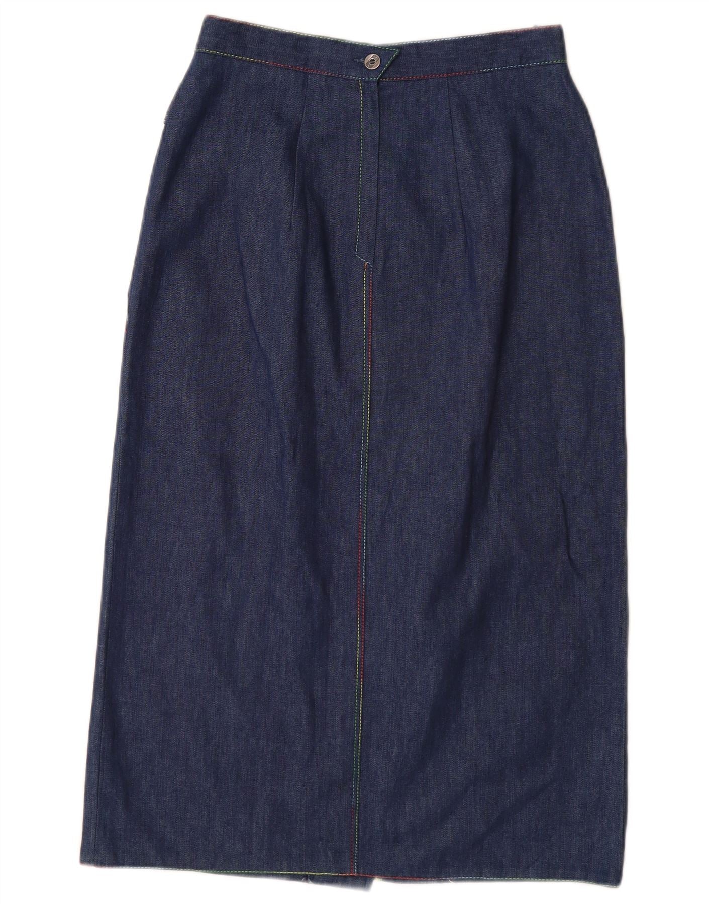 Saia jeans feminina VINTAGE de cintura alta UE 38 médio W26 algodão azul marinho