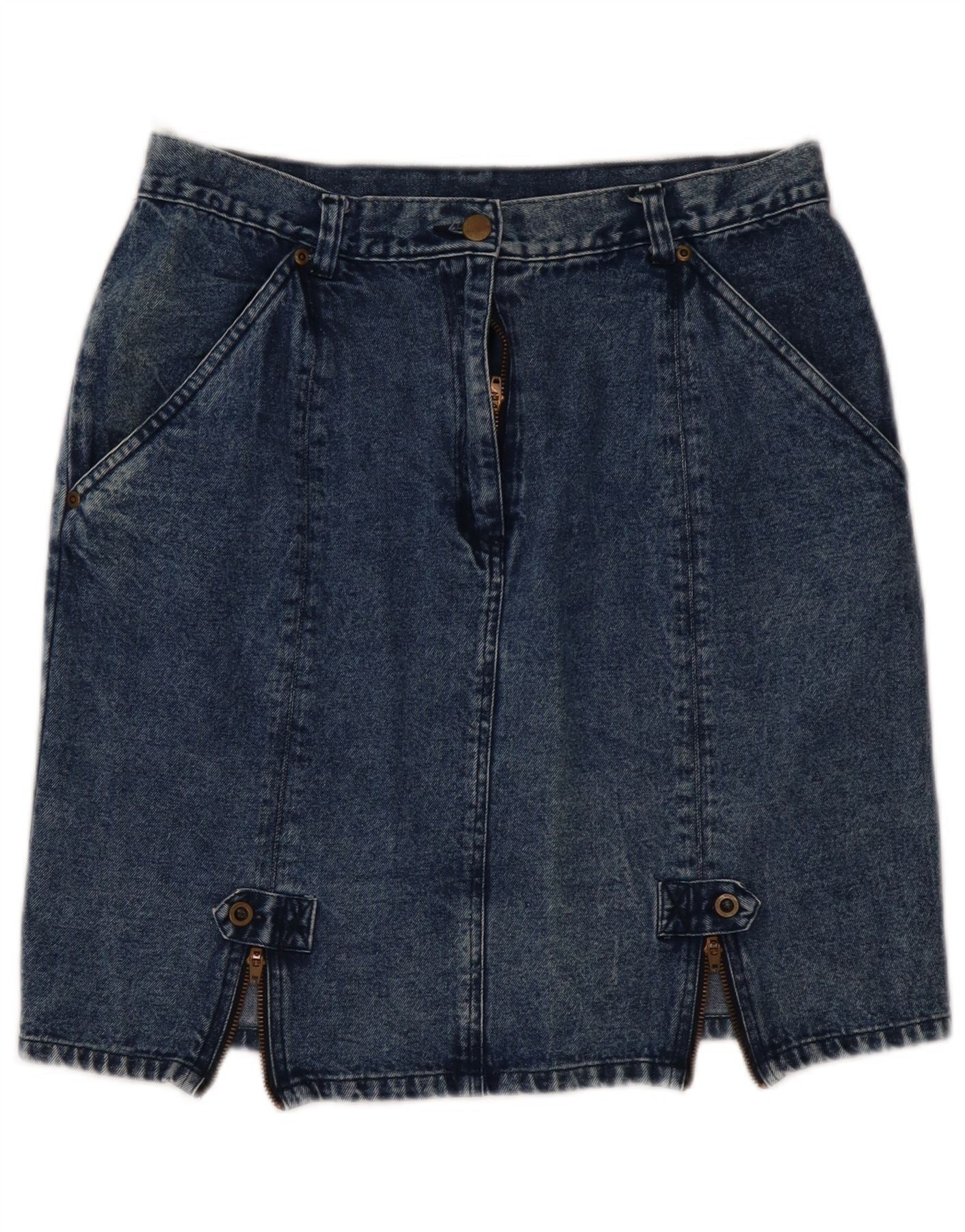 Mini saia jeans feminina VINTAGE de cintura alta EU 44 XL W32 algodão azul