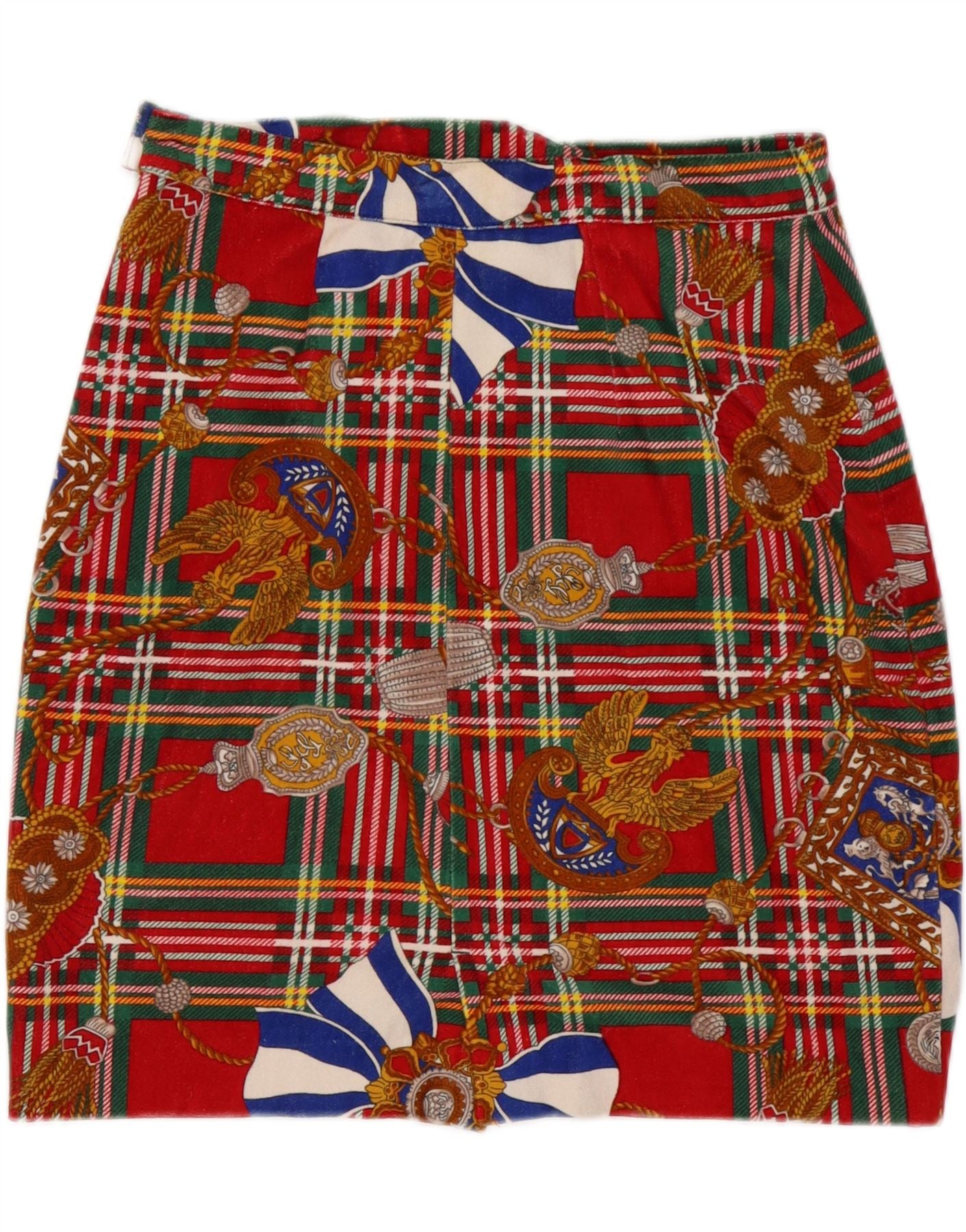 VINTAGE Womens High Waist Straight Skirt IT 44 Medium W32 Red Check