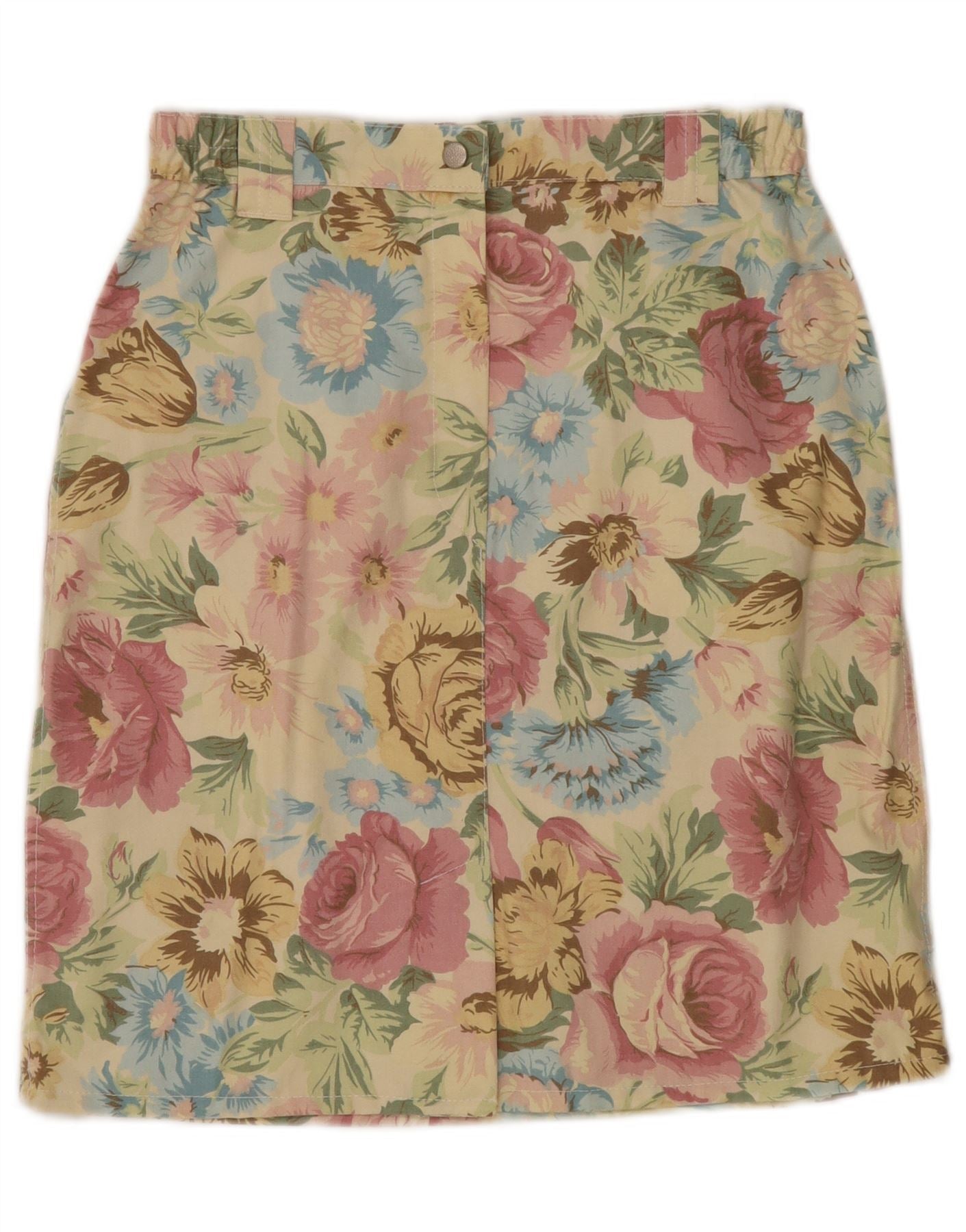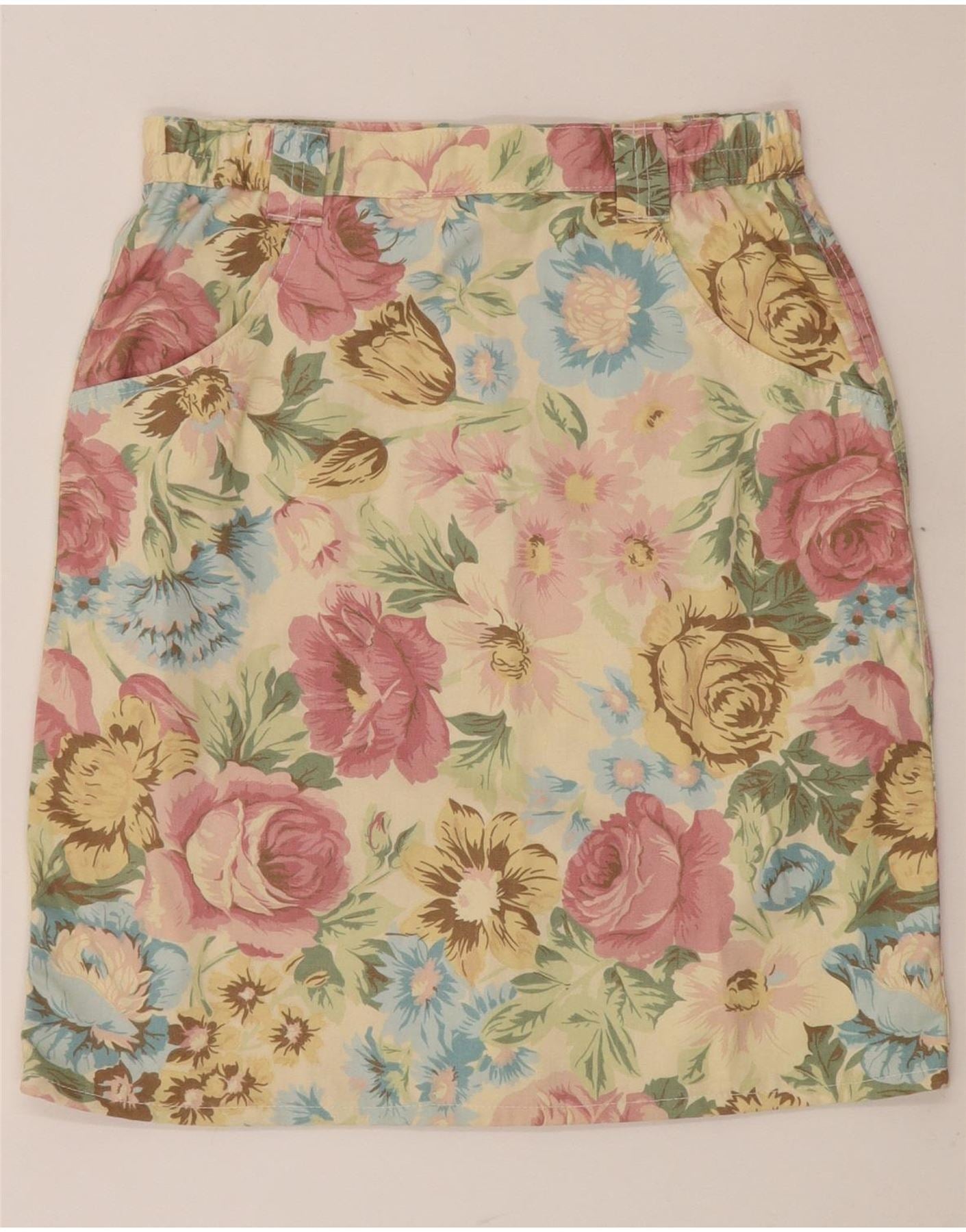 Saia reta feminina de cintura alta VINTAGE W30 floral amarelo médio