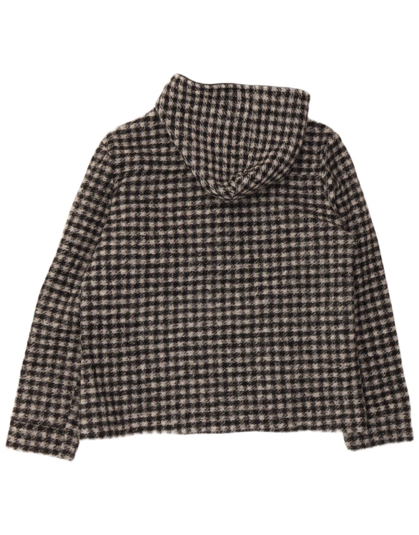 Jaqueta bomber feminina VINTAGE com capuz Reino Unido 18 XL lã xadrez preta