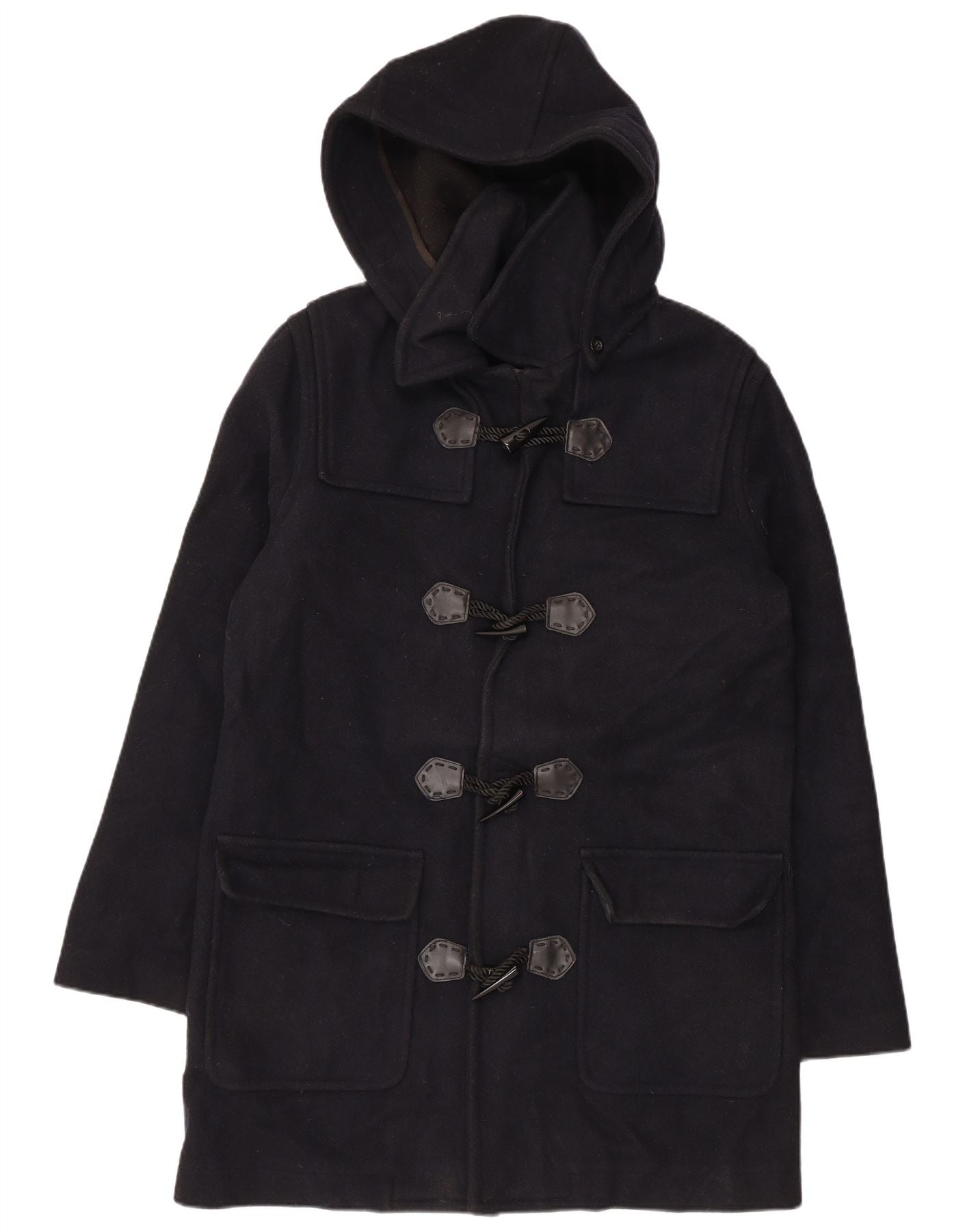 Casaco Duffle feminino com capuz VINTAGE Reino Unido 18 XL lã azul marinho