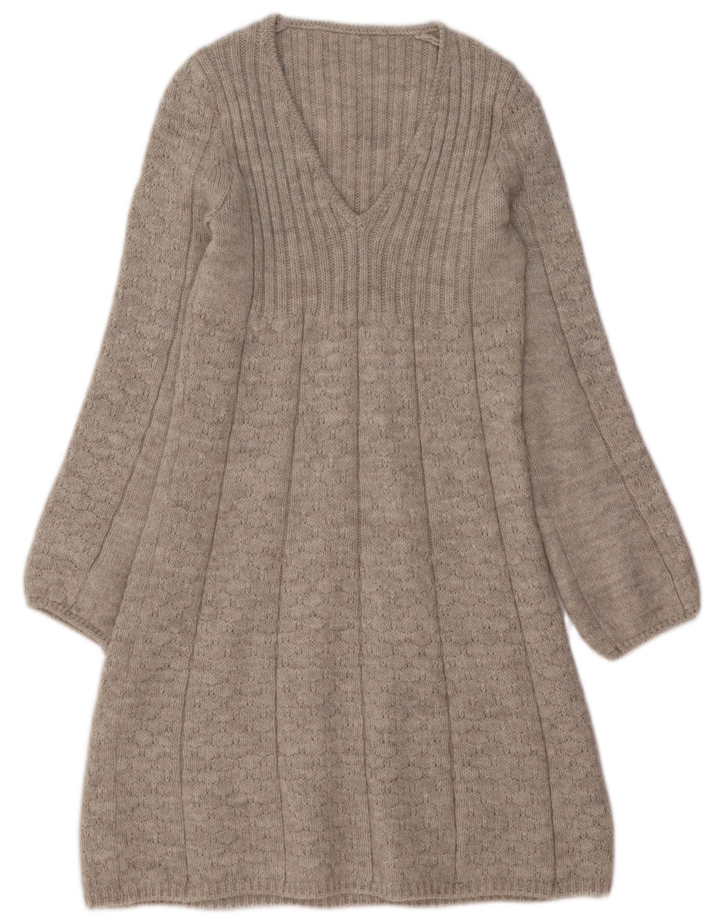 Vestido jumper feminino VINTAGE Reino Unido 10 pequeno acrílico bege