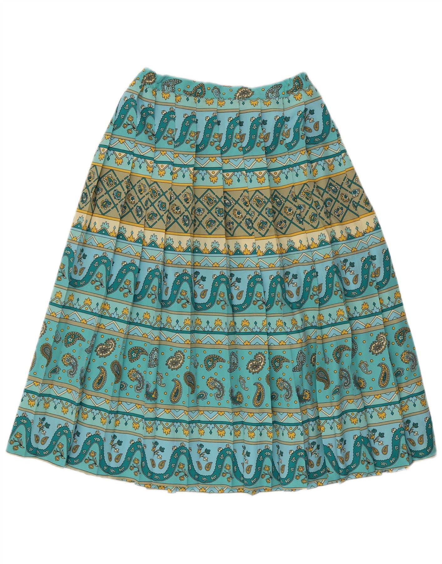 Saia feminina VINTAGE plissada faca W32 grande poliéster paisley turquesa