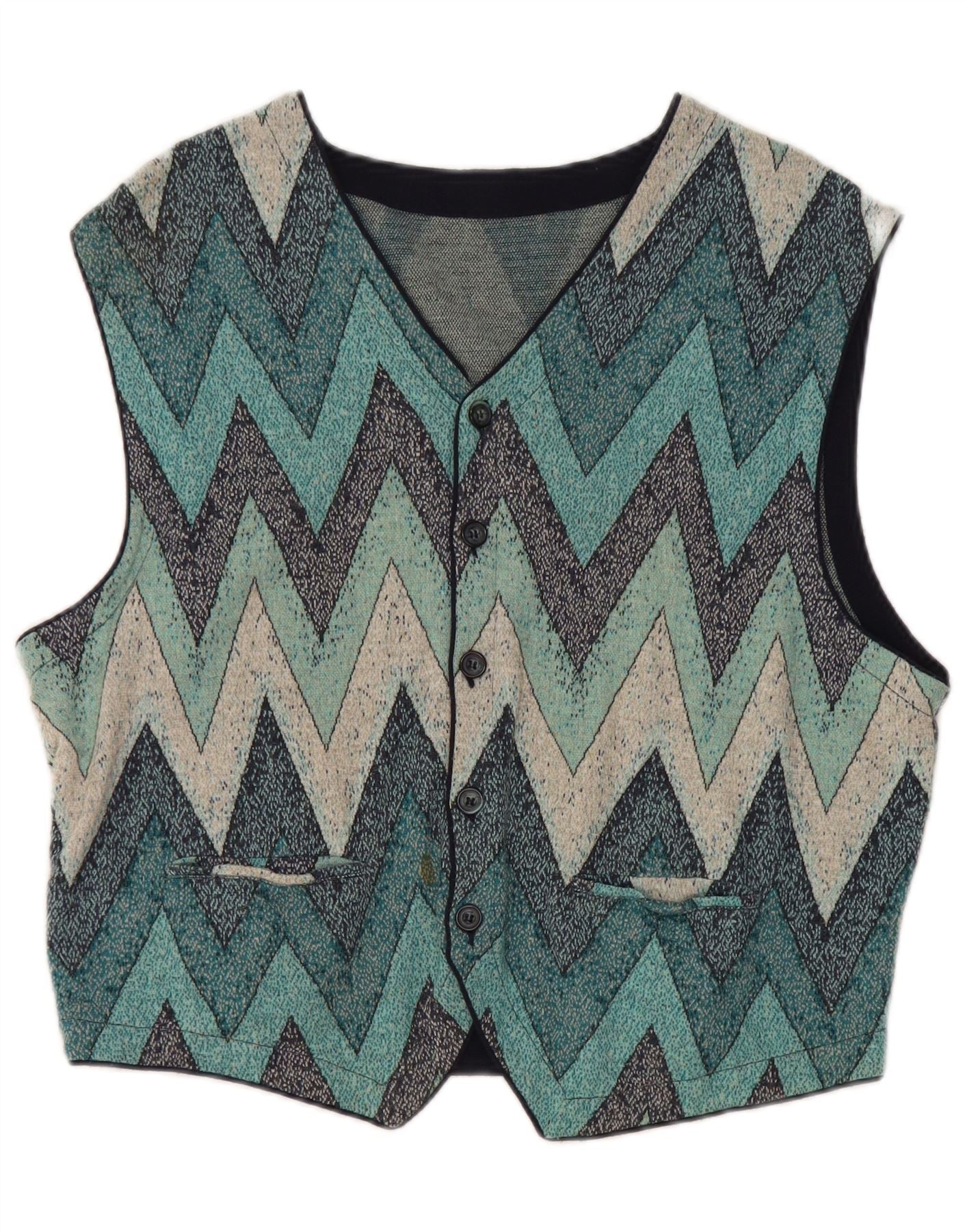 Colete de malha feminino vintage IT 52 2XL azul Chevron algodão