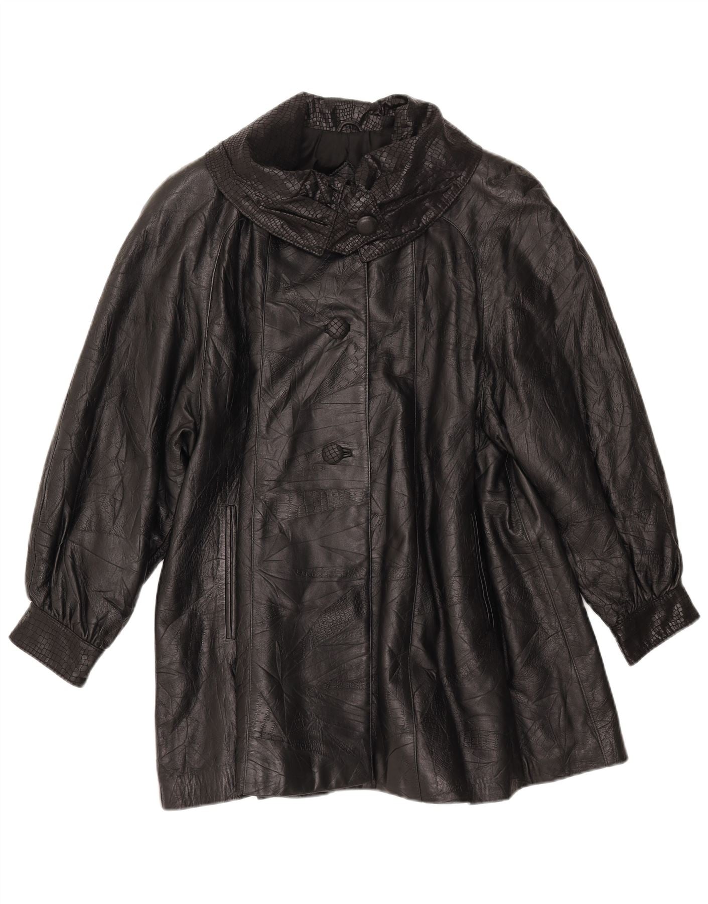 Casaco de couro feminino VINTAGE IT 44 couro preto médio