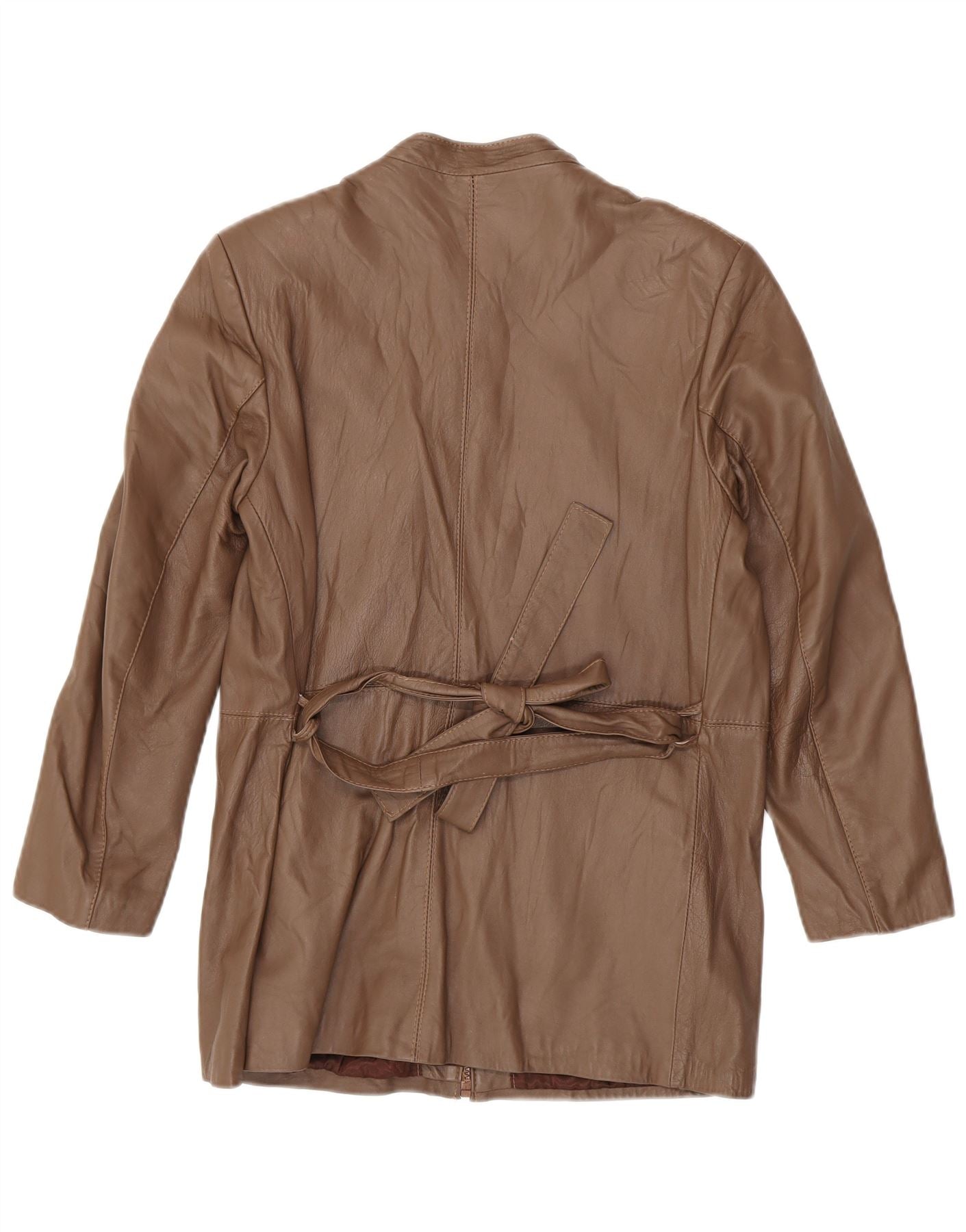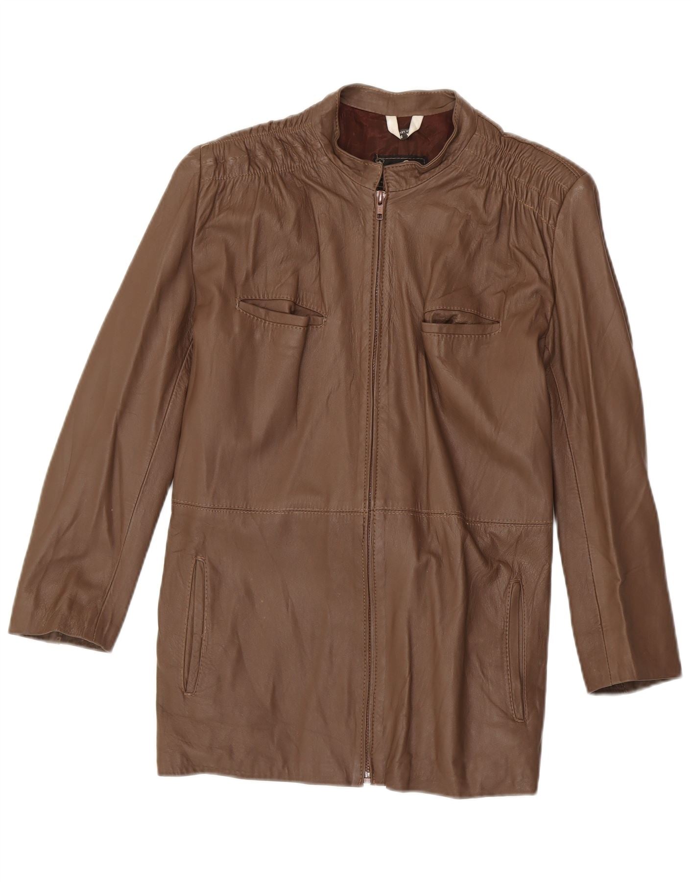 Casaco de couro feminino vintage Reino Unido 14 couro marrom médio