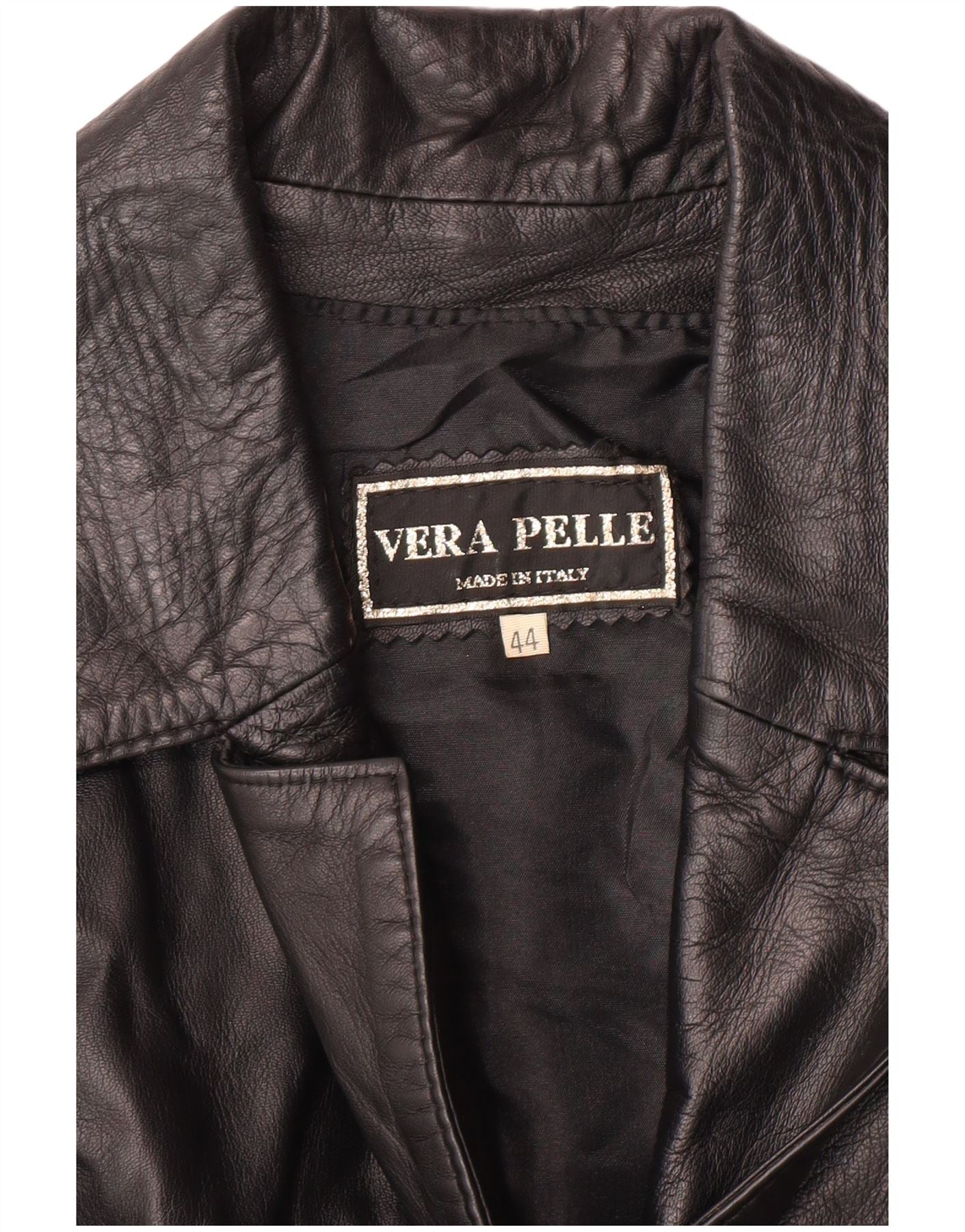 Colete feminino de couro VINTAGE IT 44 couro preto médio