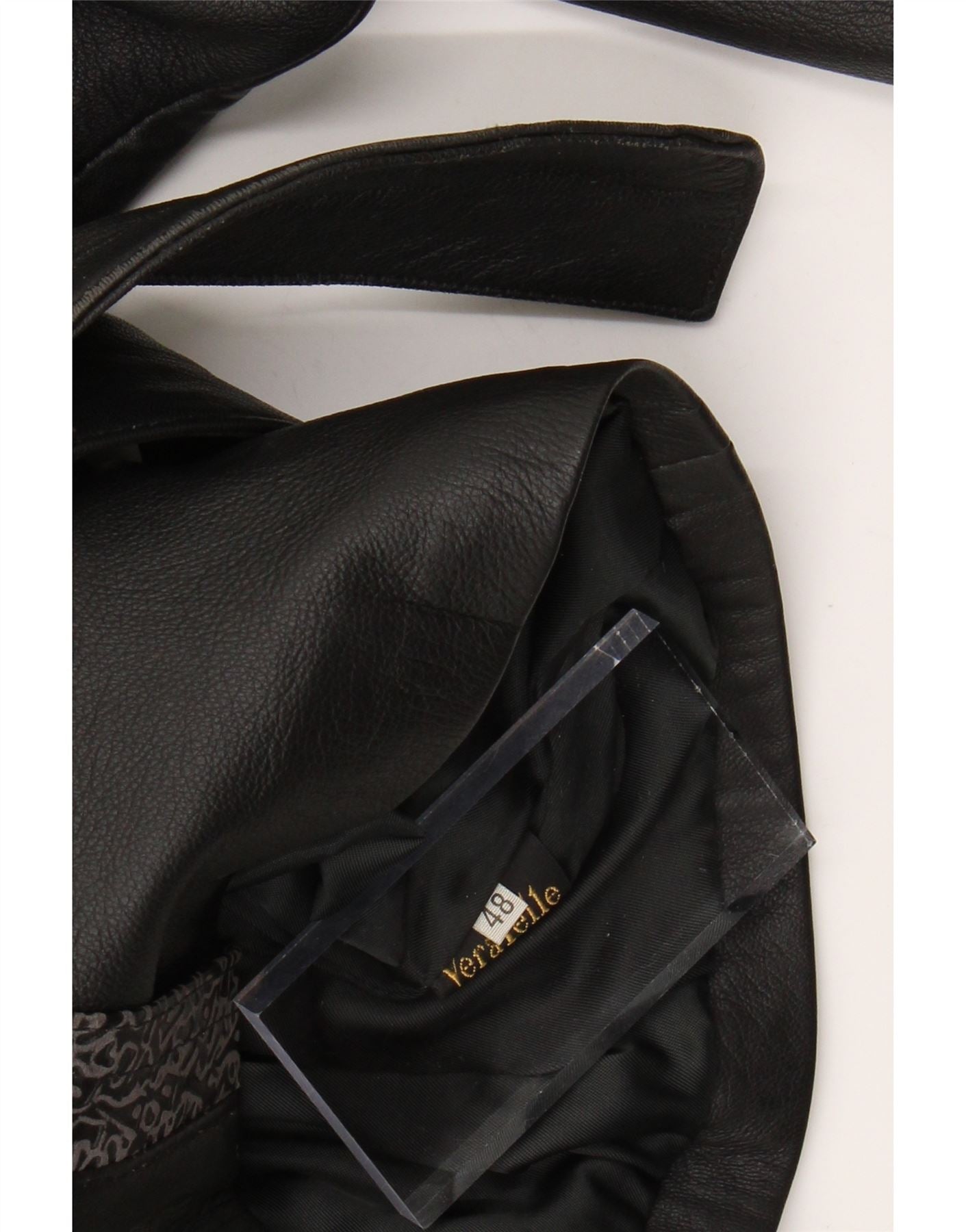 Jaqueta de couro feminina VINTAGE IT 48 XL couro geométrico preto
