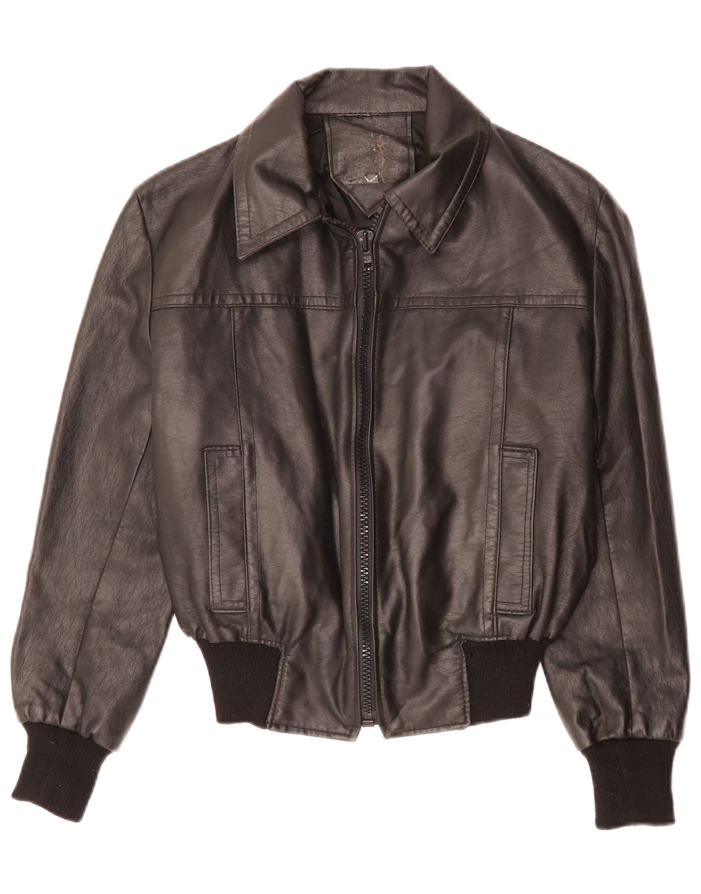 Jaqueta de couro feminina VINTAGE UK 12 média preta