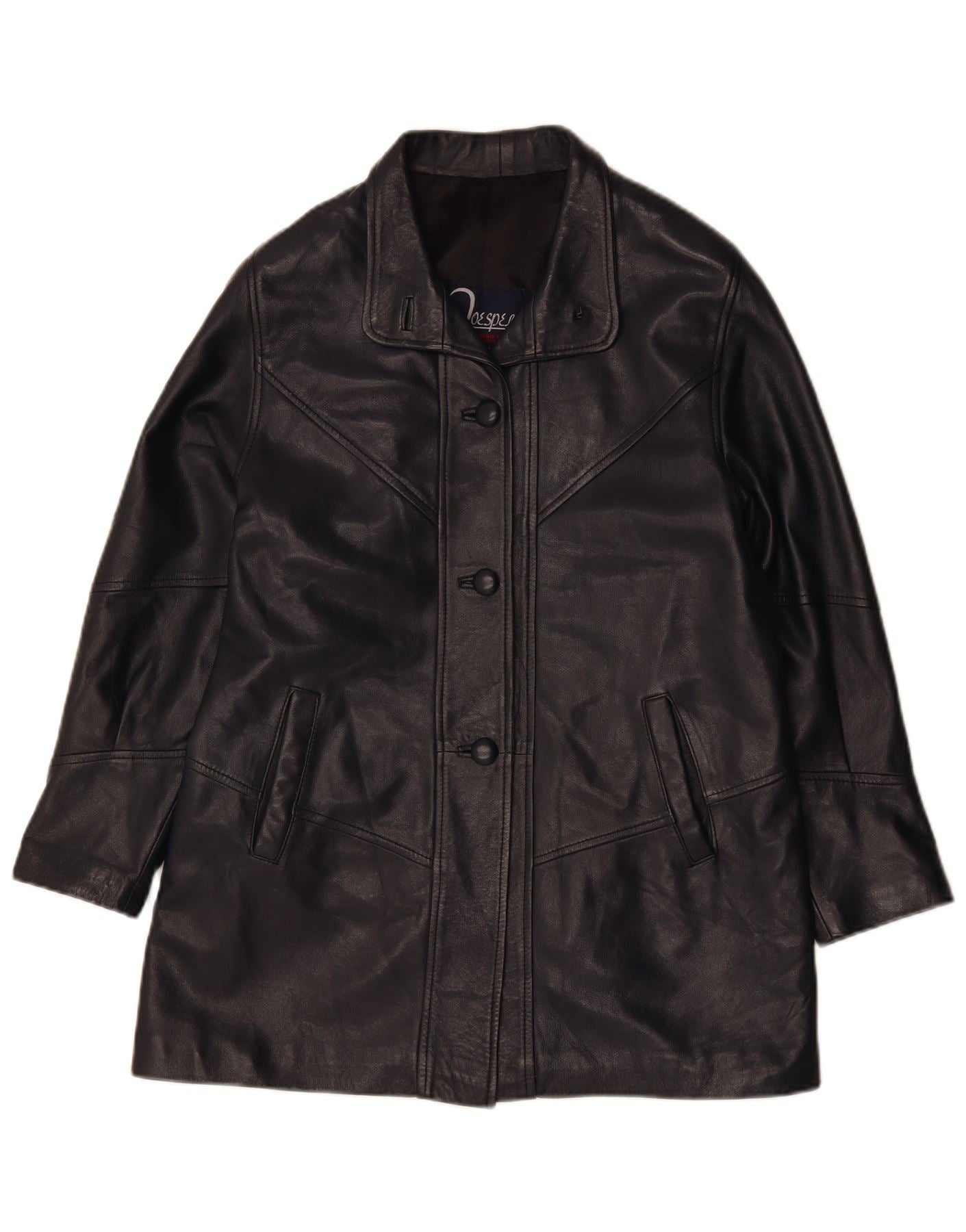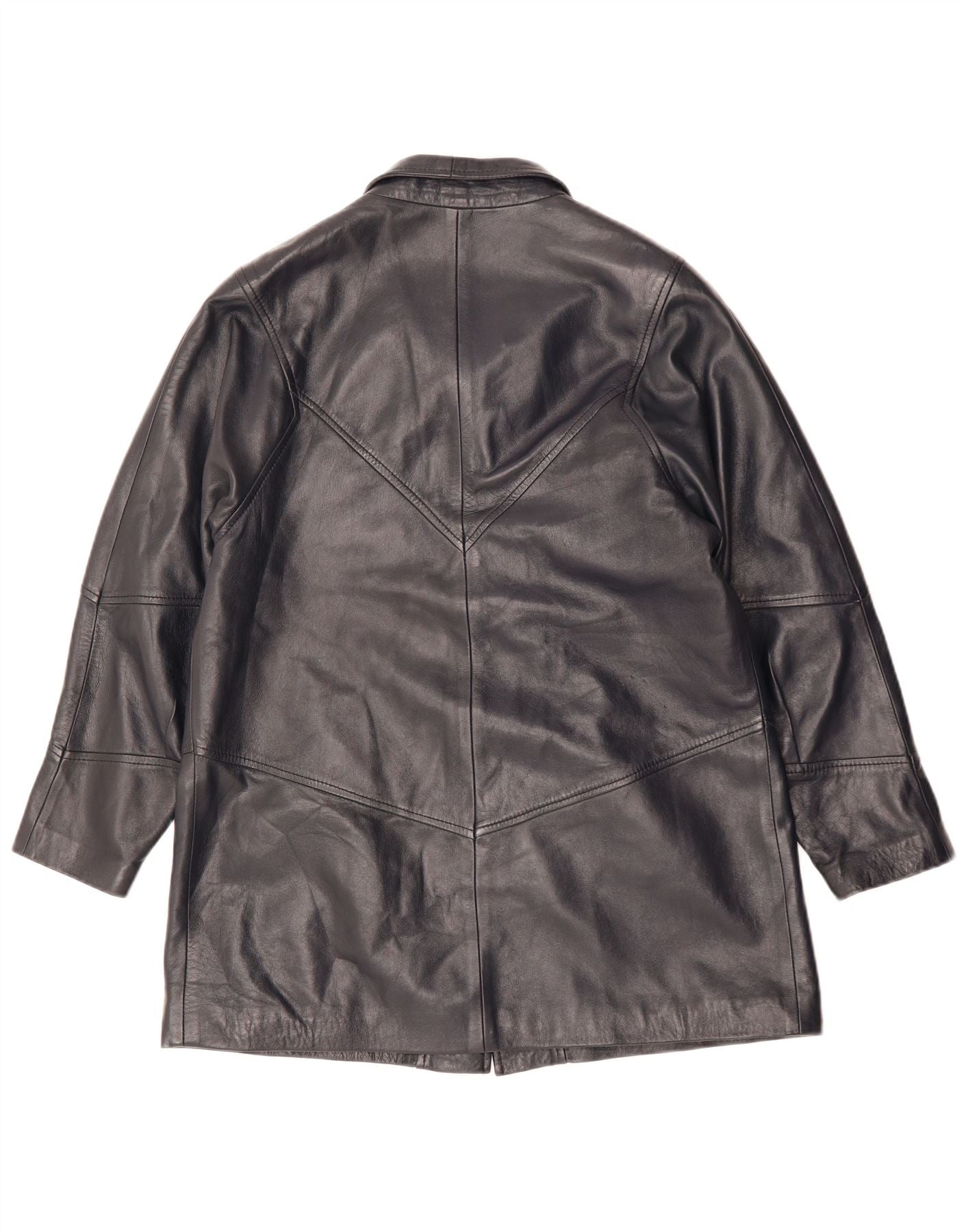 Jaqueta de couro feminina vintage Reino Unido 14 couro preto médio