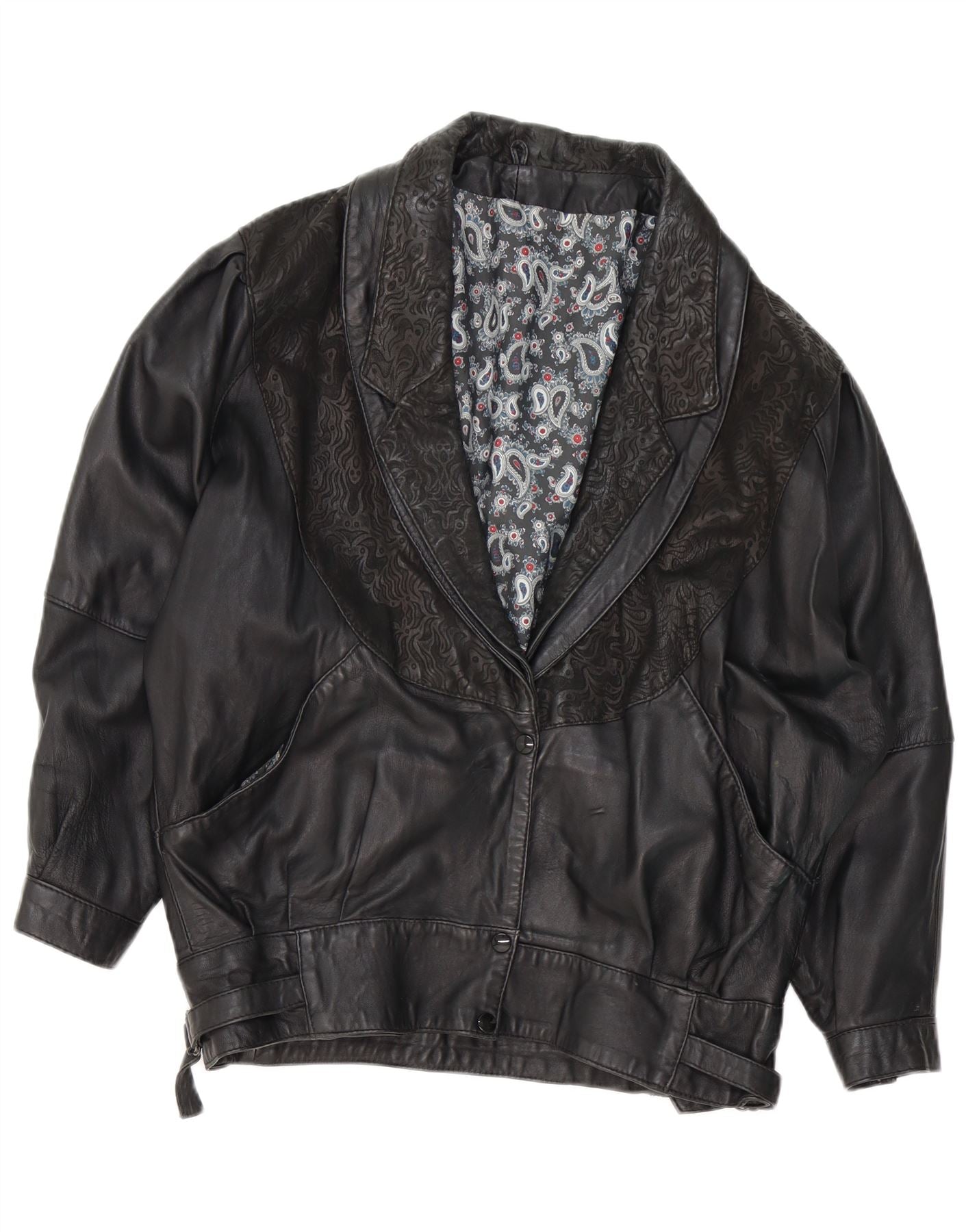Jaqueta de couro feminina VINTAGE UK 18 XL preta Paisley