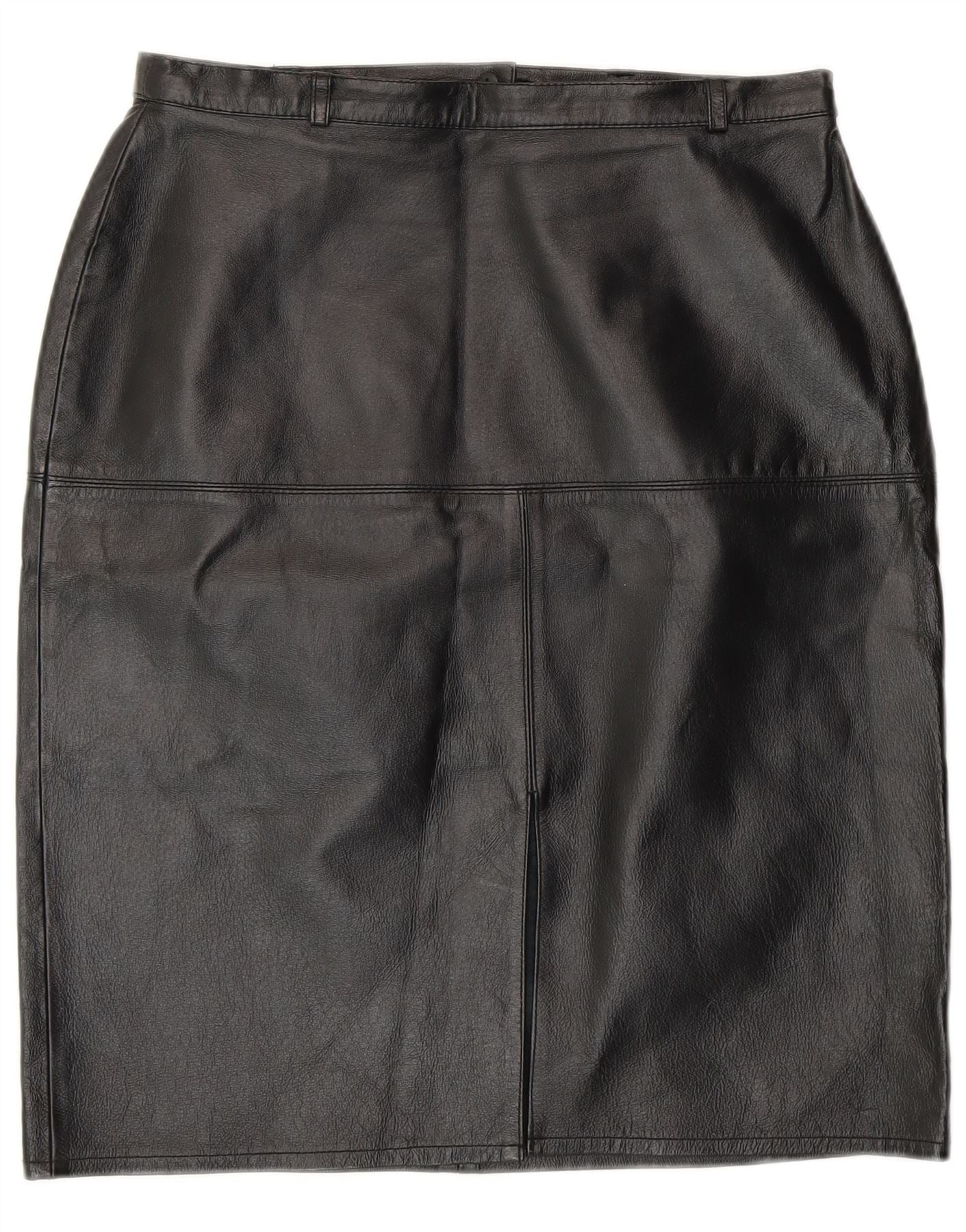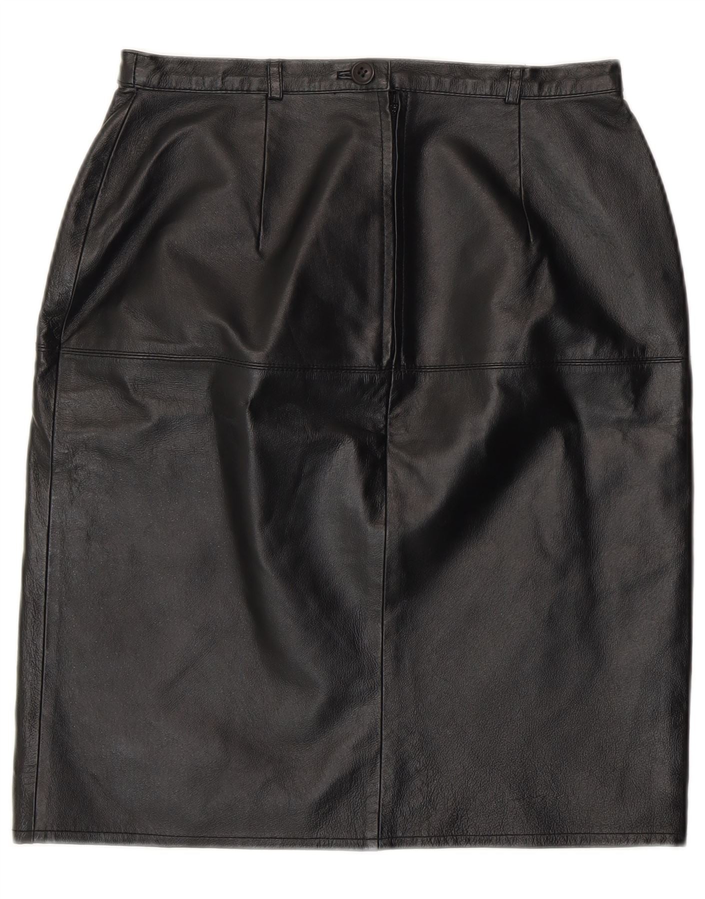 Saia lápis feminina vintage de couro Reino Unido 12 médio W28 couro preto