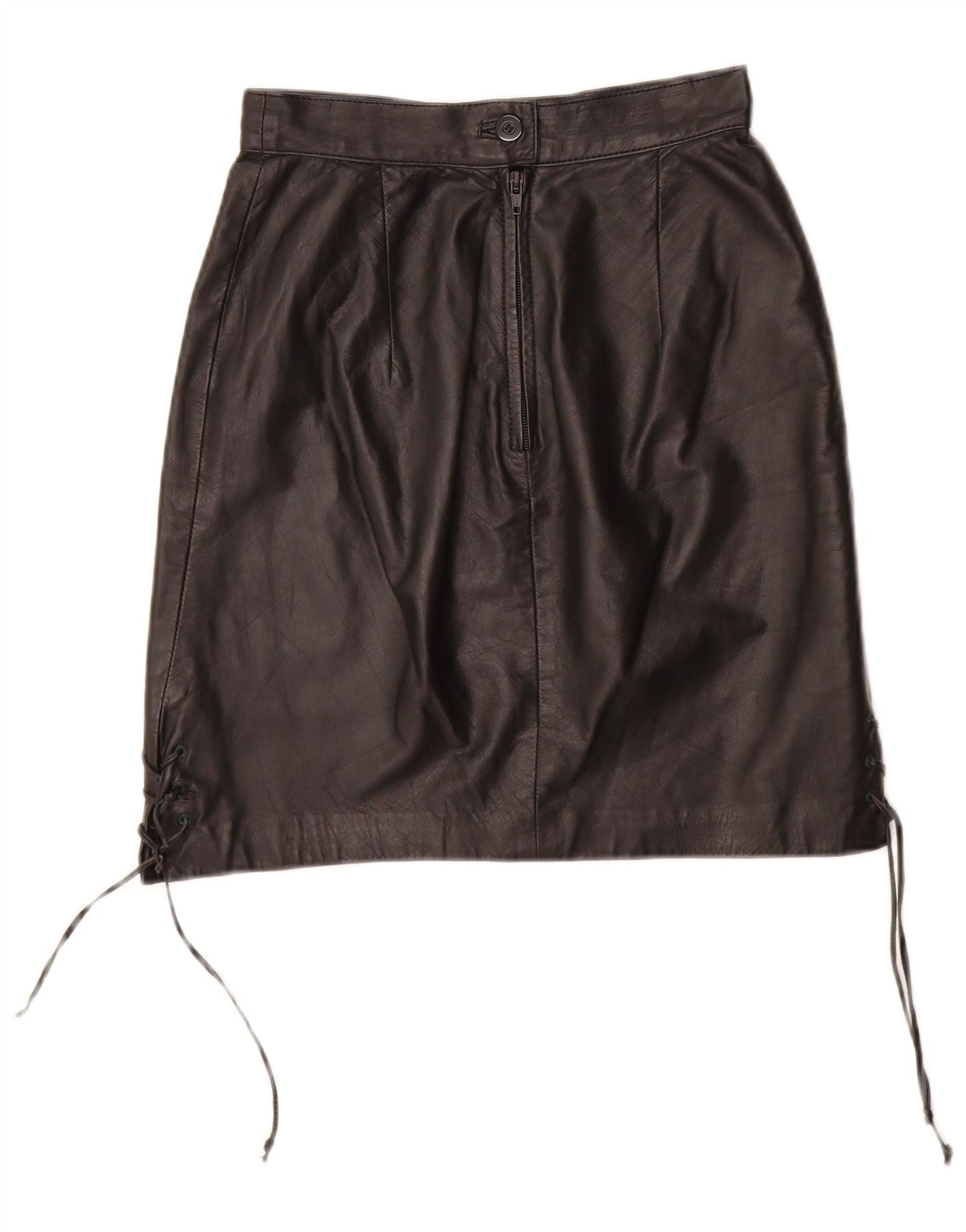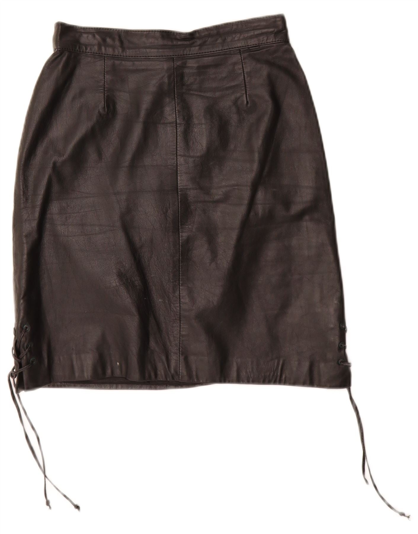 Saia de couro feminina VINTAGE EU 34 XS W24 couro preto
