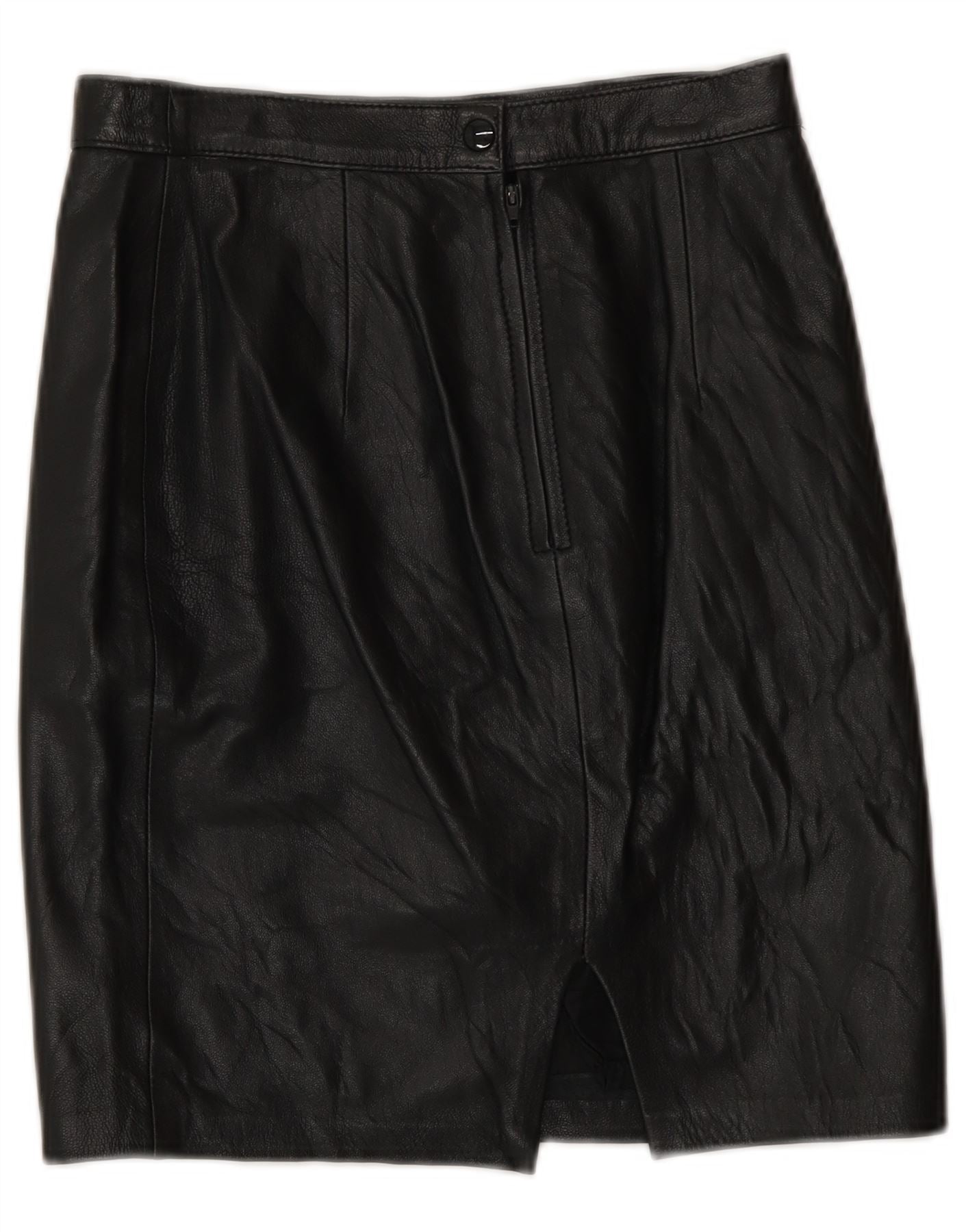 Saia de couro feminina vintage IT 42 médio W26 preta