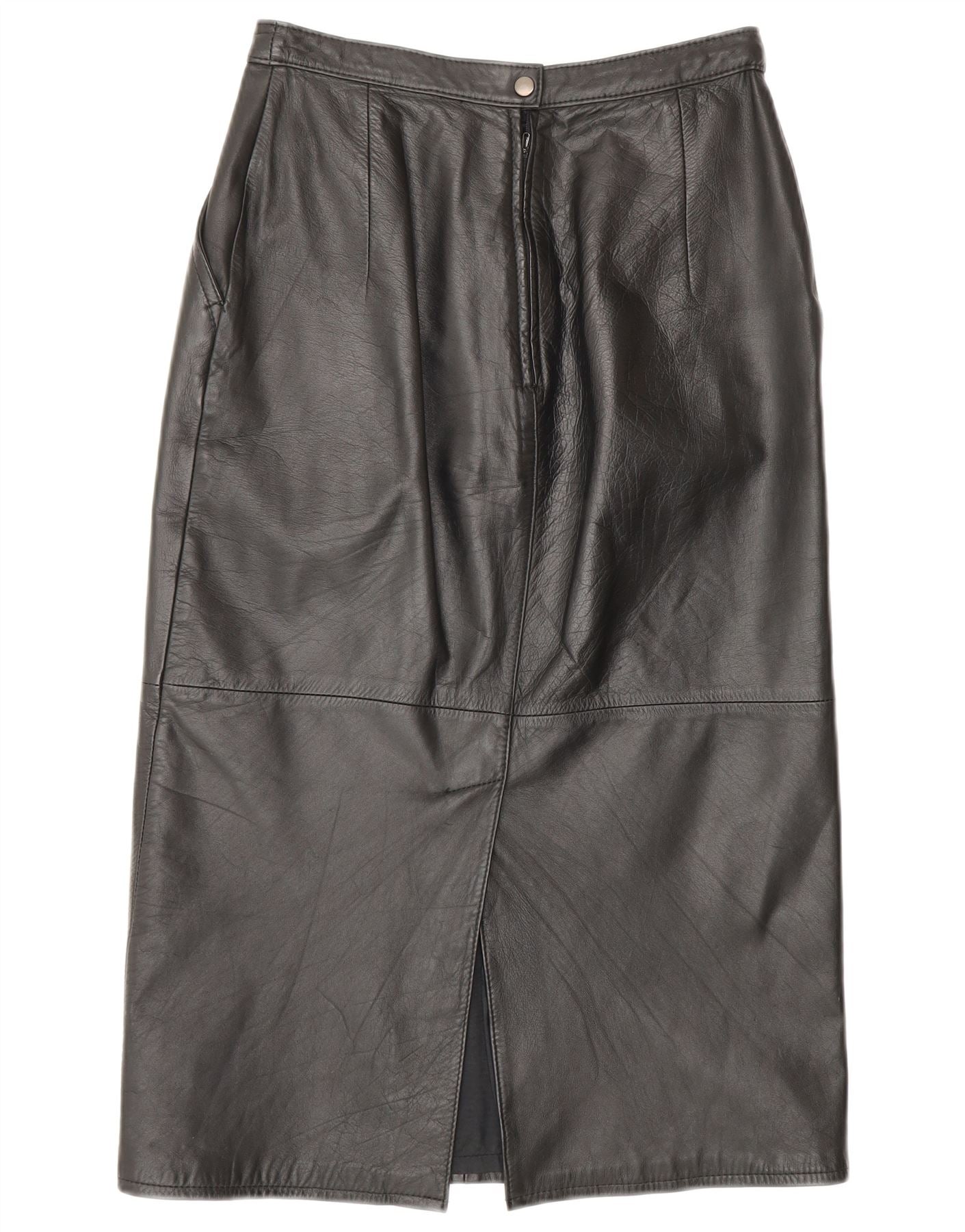 Saia feminina de couro VINTAGE Reino Unido 10 pequena W26 couro preto
