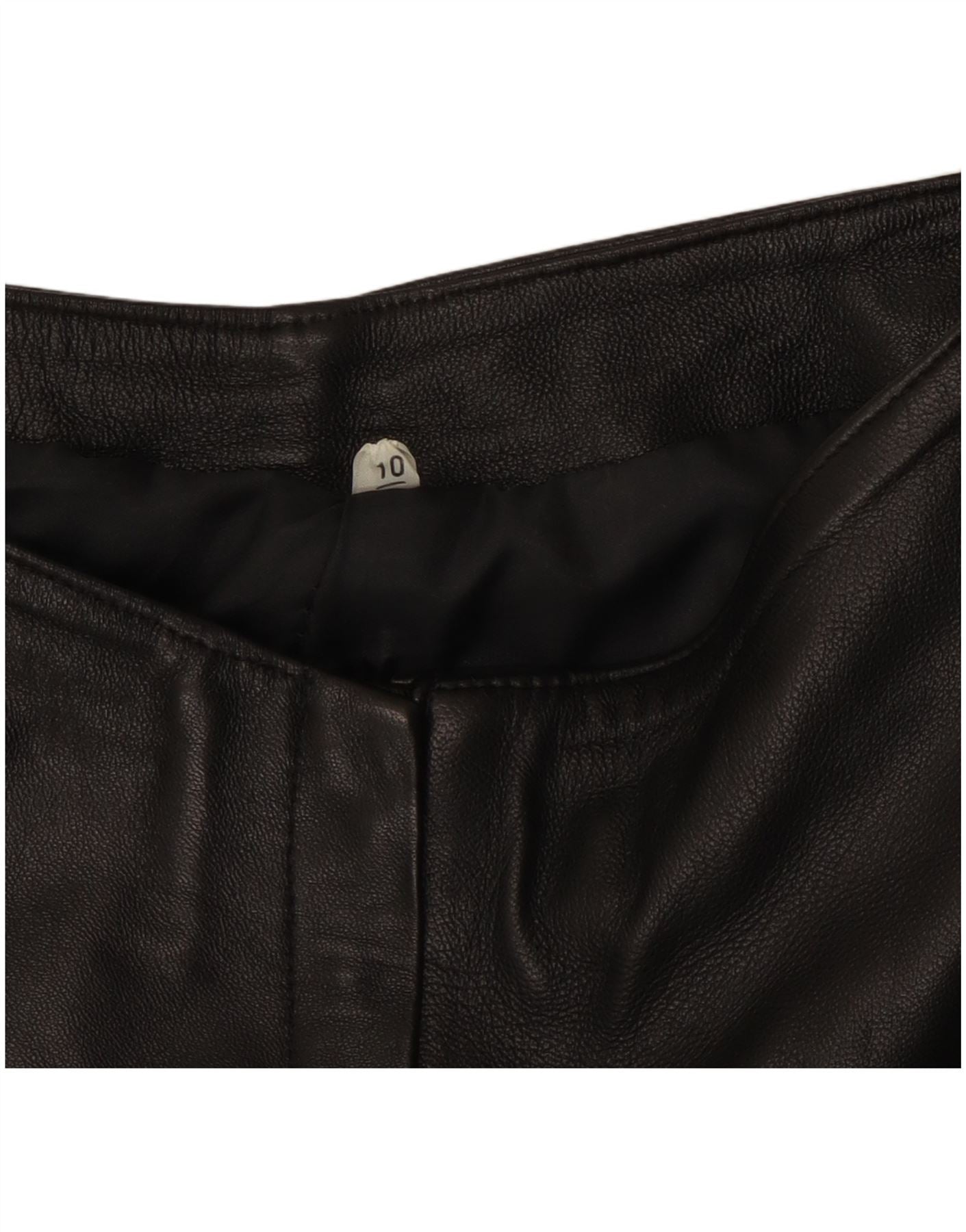 Calças de couro femininas VINTAGE UK 10 pequenas W27 L31 pretas