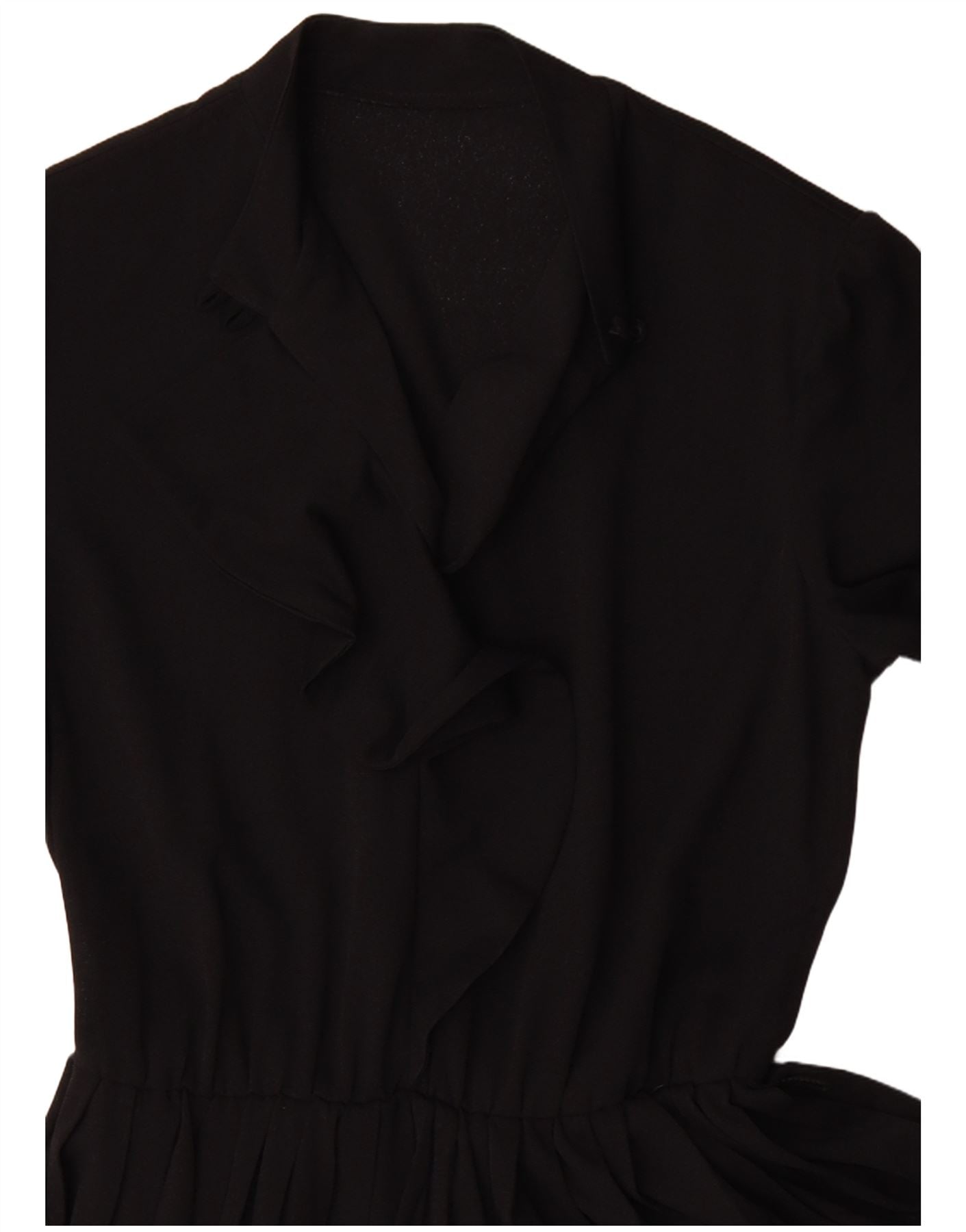 Vestido vintage feminino manga comprida linha A UK 12 médio preto