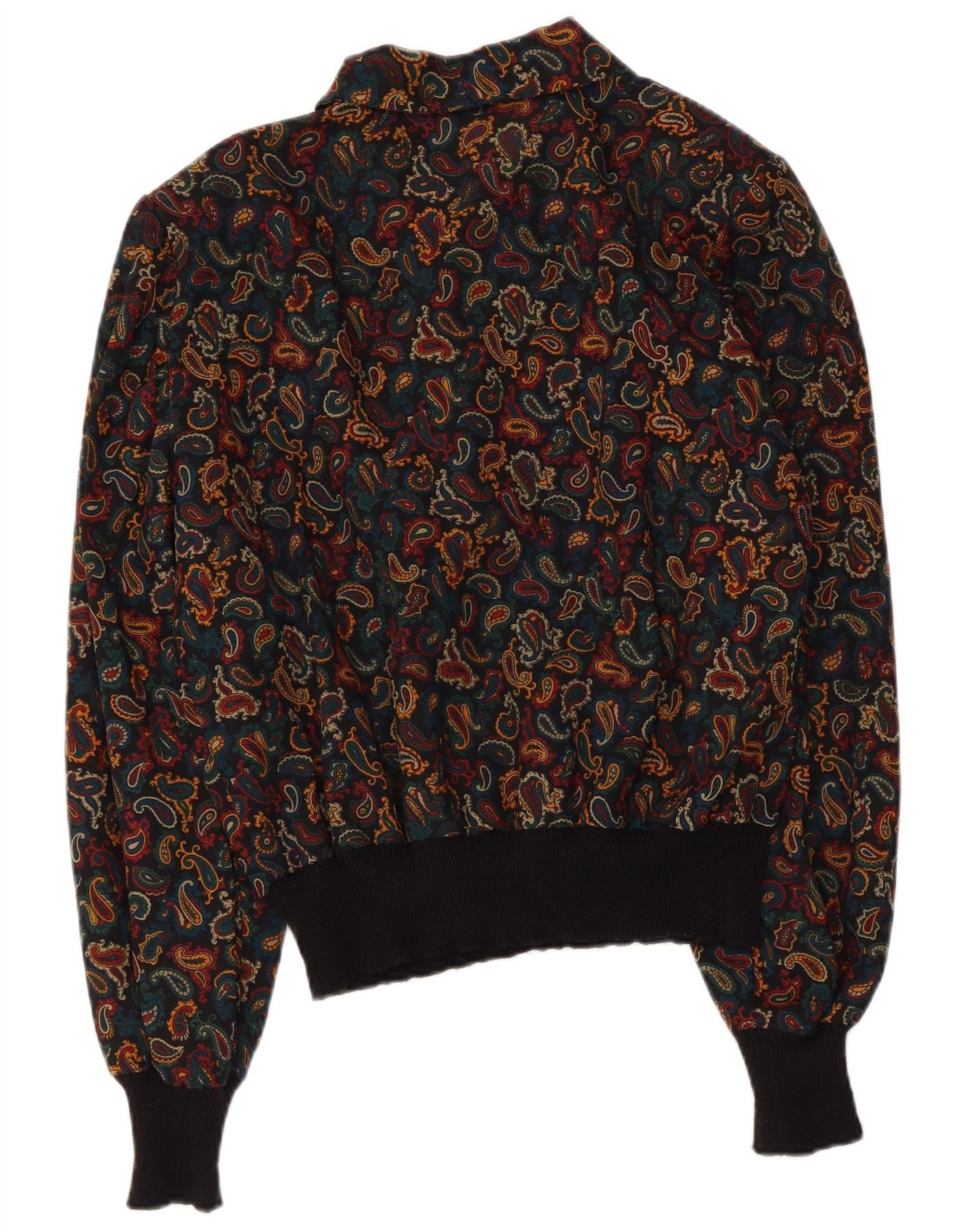 Blusa feminina vintage de manga comprida UK 14 grande paisley multicolorida