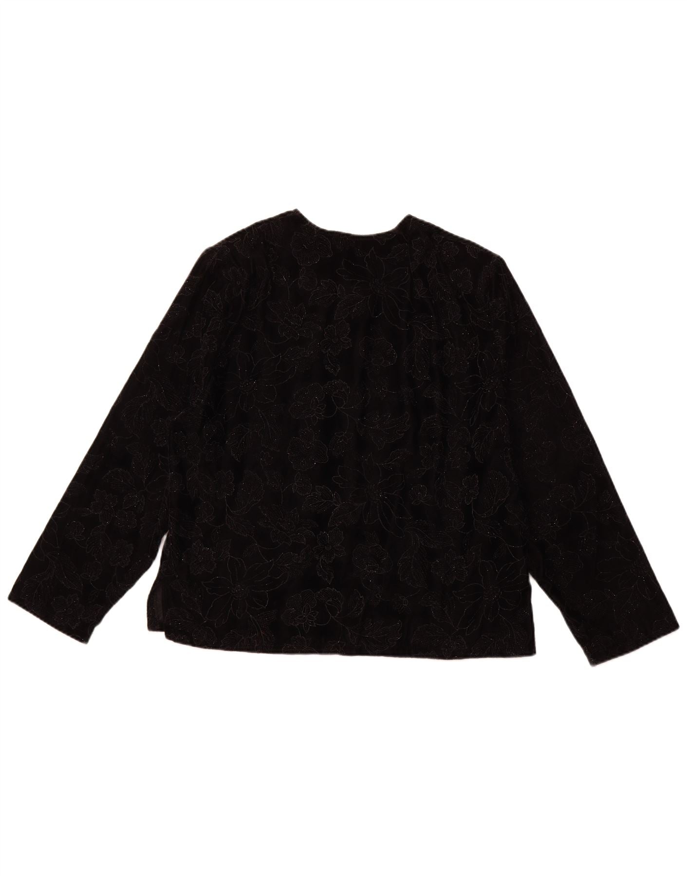 Blusa feminina VINTAGE de manga comprida UK 16 grande preta floral