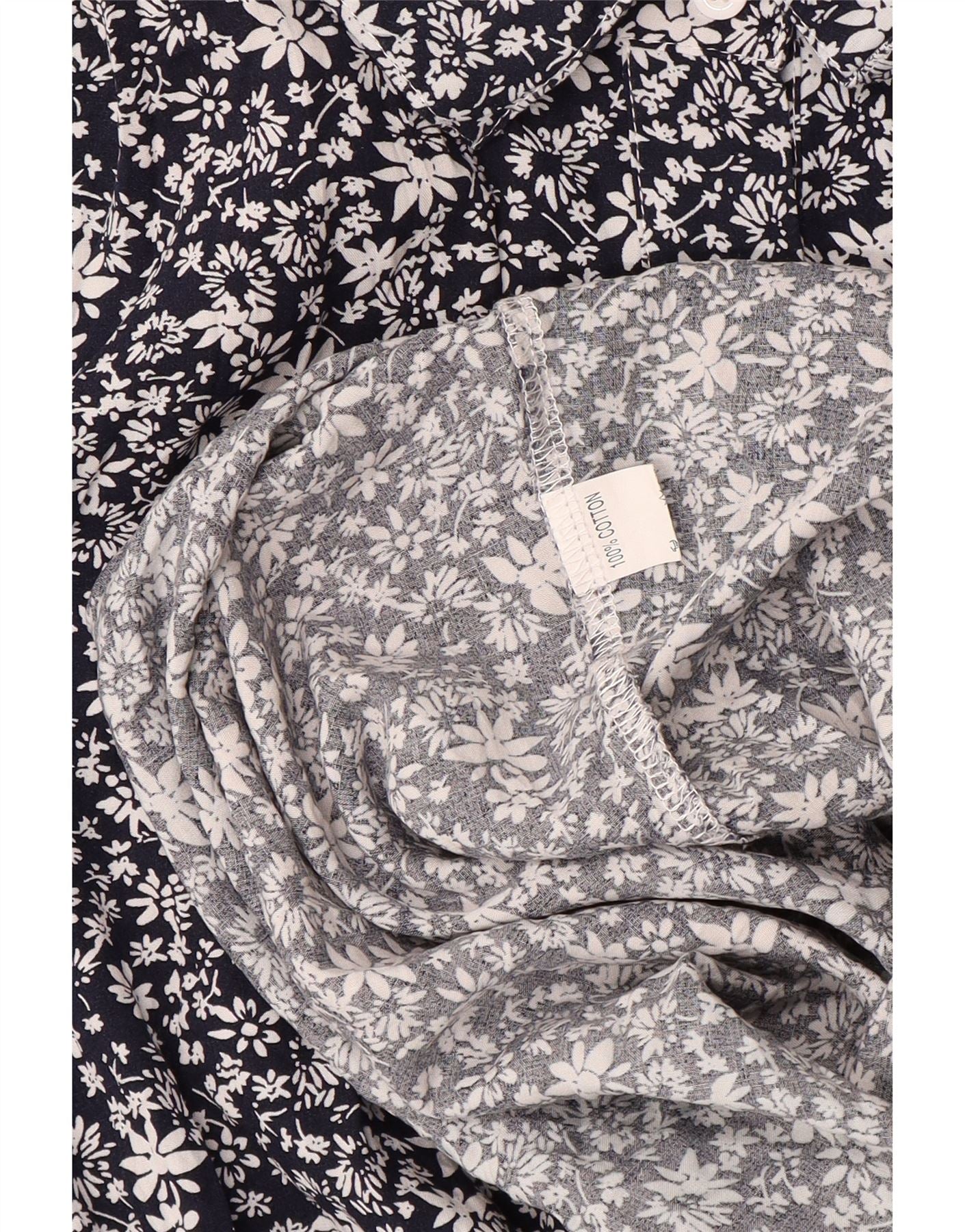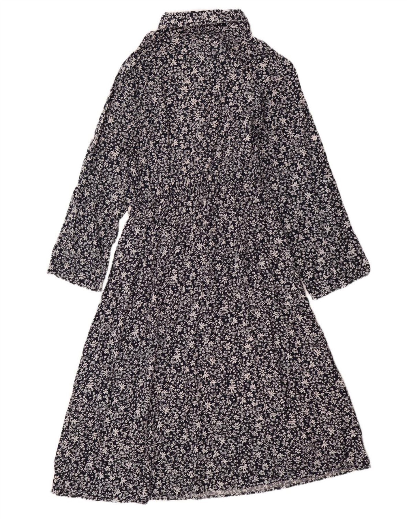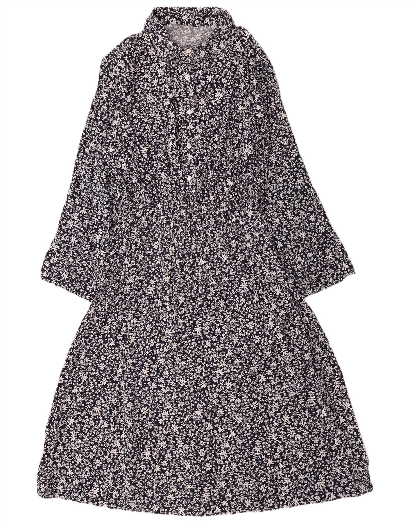 Vestido maxi feminino VINTAGE de manga comprida Reino Unido 14 grande algodão floral azul marinho