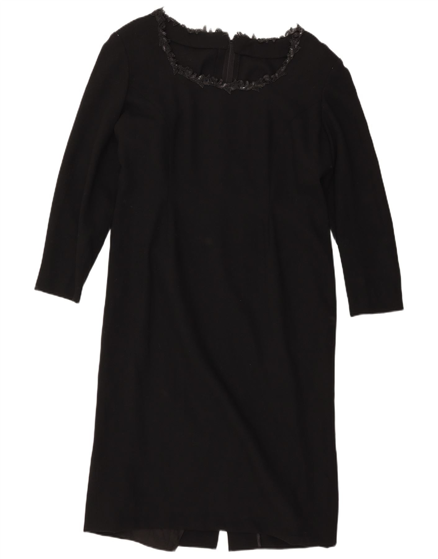 Vestido feminino VINTAGE manga comprida com bainha UK 14 grande preto