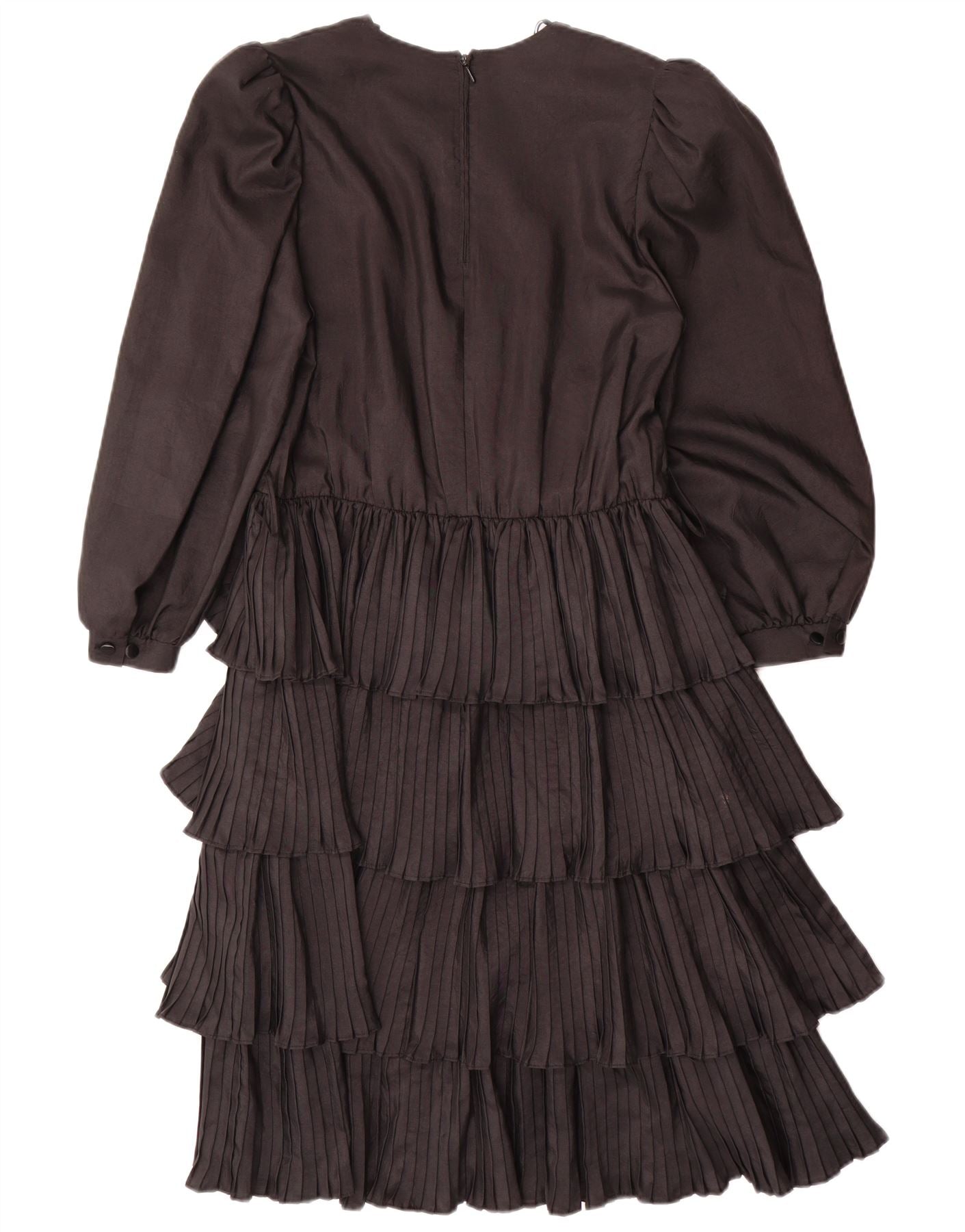 Vestido feminino VINTAGE de manga comprida em camadas EU 36 pequeno poliéster preto