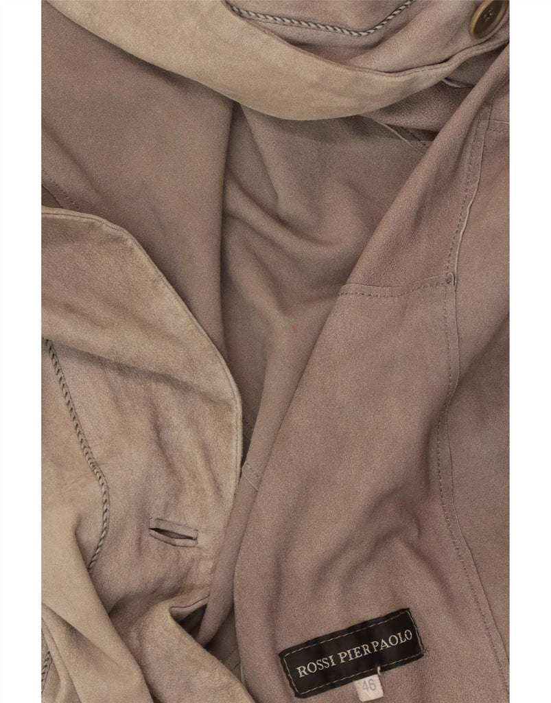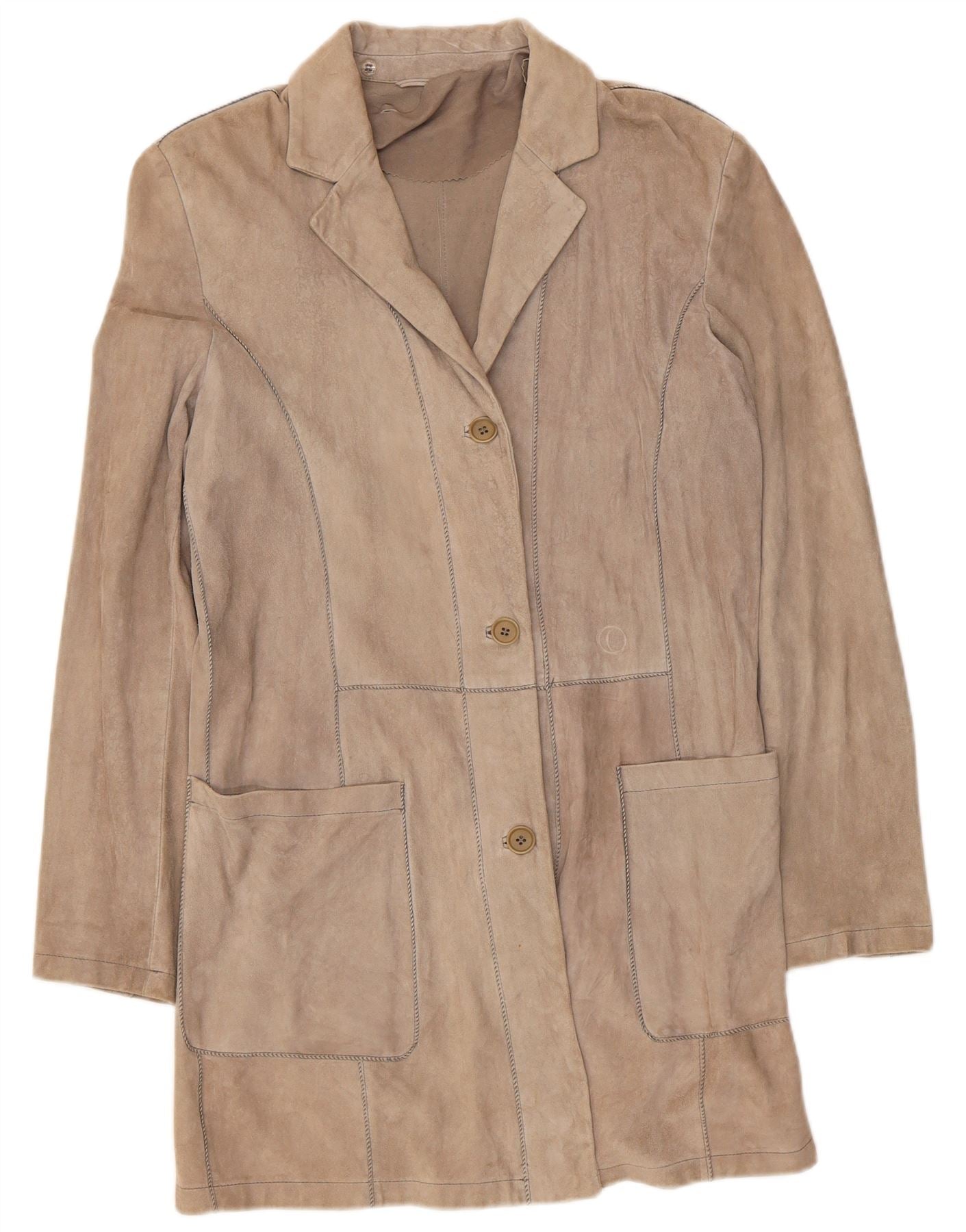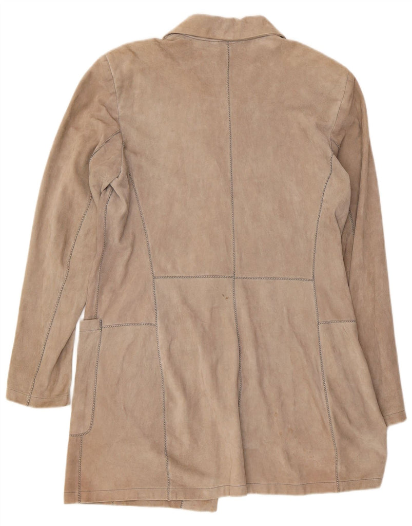VINTAGE Womens Longline Suede 3 Button Blazer Jacket IT 46 Large Grey