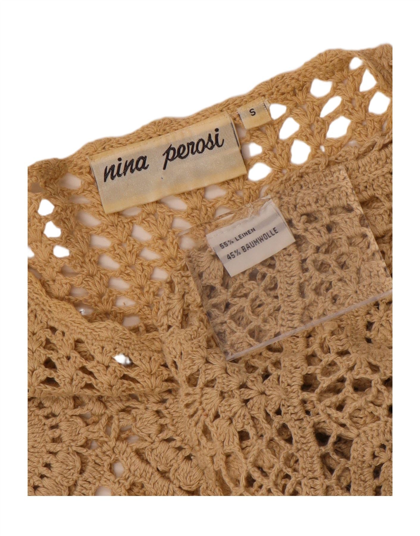 Suéter feminino VINTAGE com gola canoa grande Reino Unido 10 pequeno bege