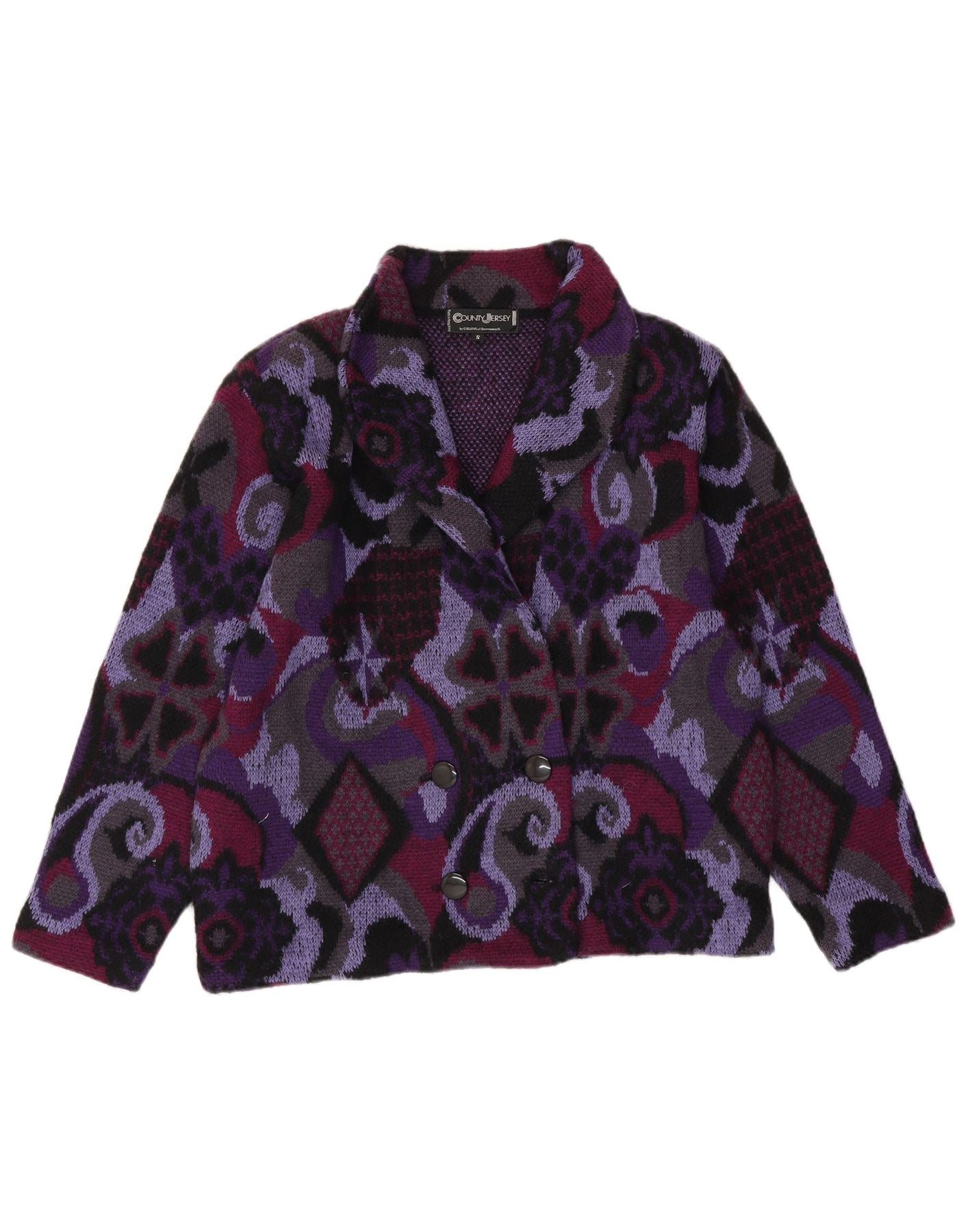 Suéter cardigã feminino VINTAGE grande Reino Unido 10 pequeno roxo geométrico