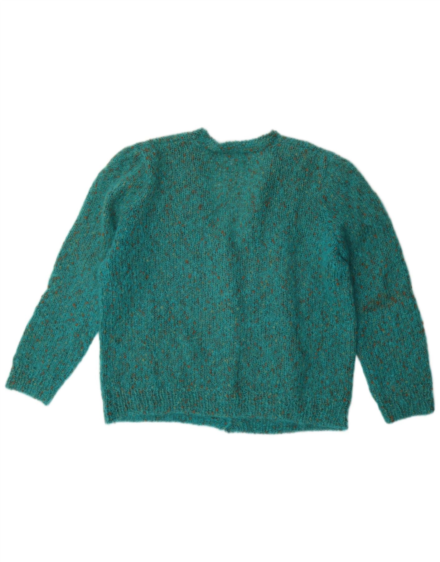 Suéter cardigã feminino vintage de grandes dimensões Reino Unido 18 XL verde salpicado