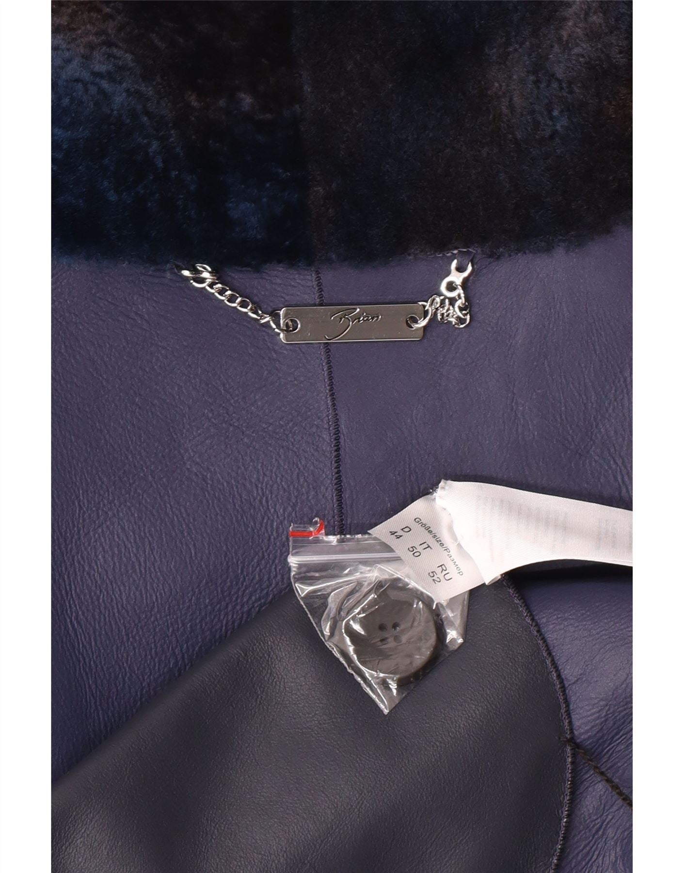 Jaqueta feminina VINTAGE de pele grande IT 50 XL pele de cordeiro azul marinho