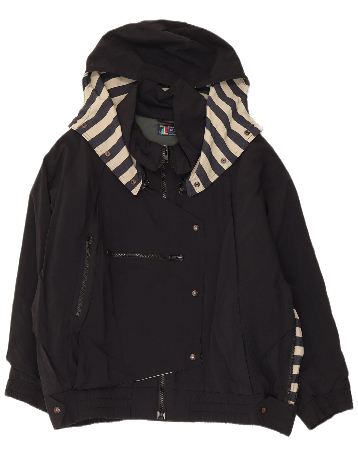 Jaqueta corta-vento feminina VINTAGE com capuz grande IT 46 grande nylon preto